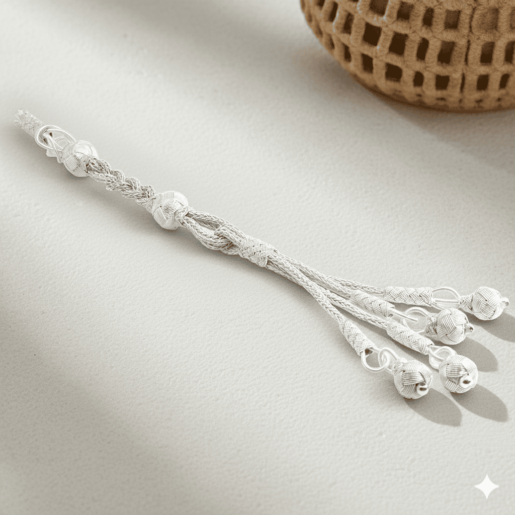 Uzun Model Beyaz Renk 4 lü 1000 Ayar Gümüş Top Kazaz Püskül