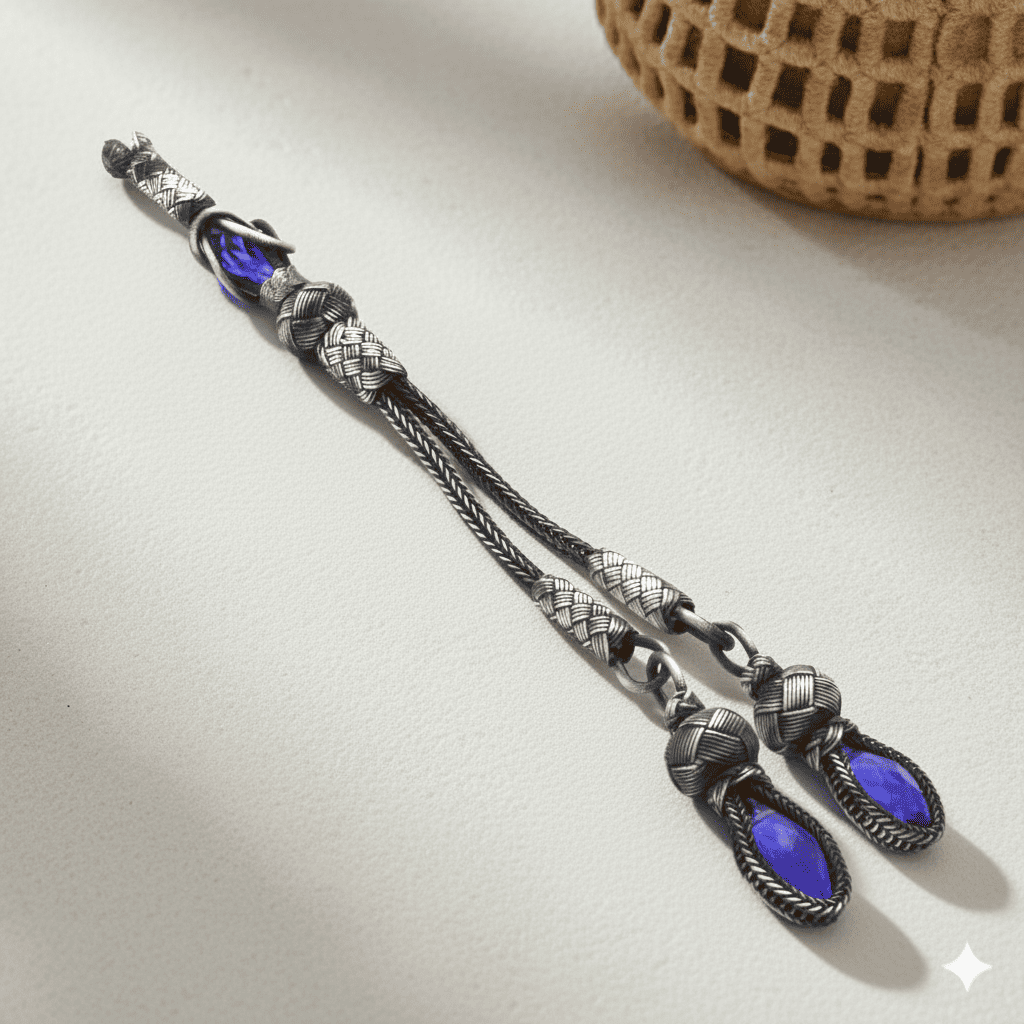 Lacivert Zirkon Taşlı 2 li 1000 Ayar Gümüş Kazaz Püskül