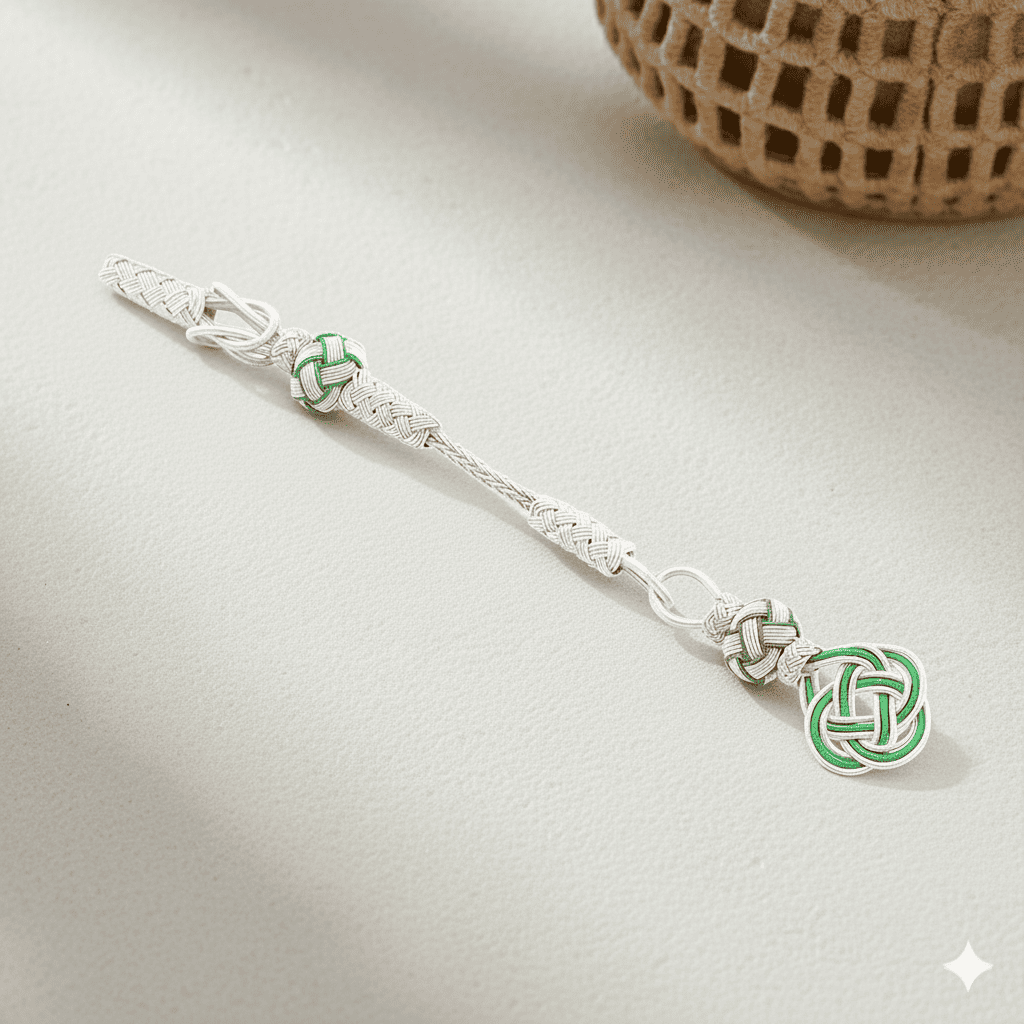 Yeşil Beyaz Renk 1000 Ayar Gümüş Kazaz Püskül