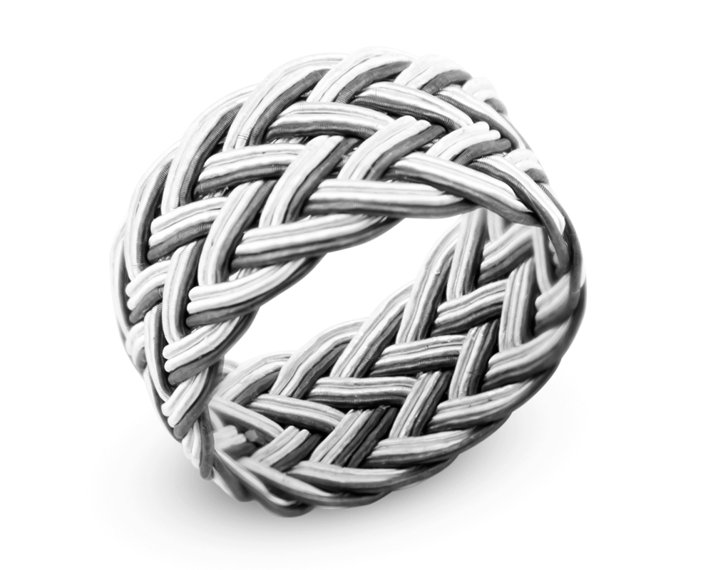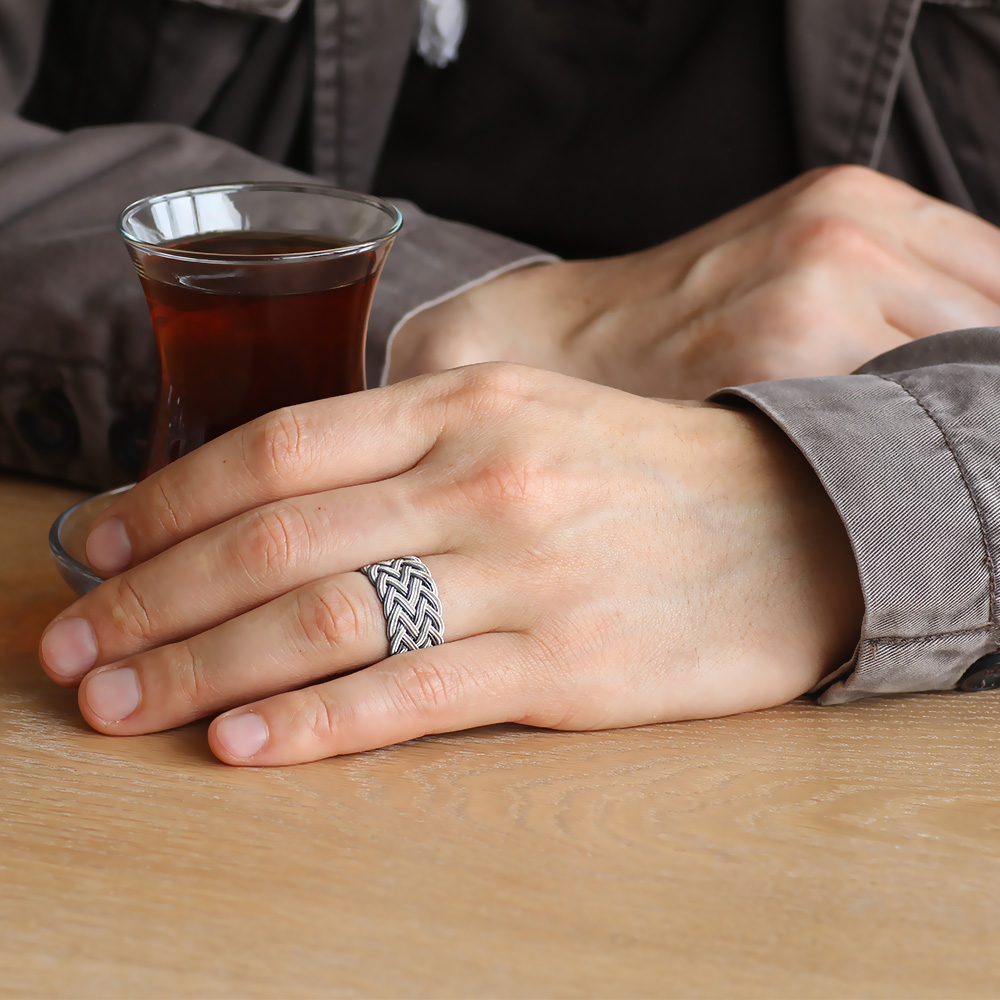 Beyaz Siyah Renkli 1000 Ayar Gümüş Trabzon El Örmesi Kazaz Yüzük