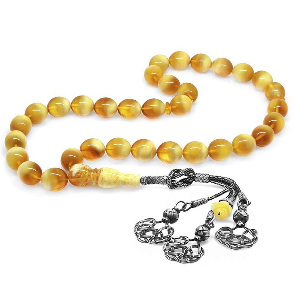 1000 Ayar Gümüş Kazaz Püsküllü Arpa Kesim Bala Beyaz Maxi Boy Kaliningrad Damla Kehribar Tesbih - 1