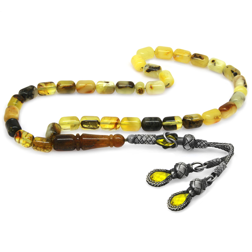 1000 Ayar Gümüş Kazaz Püsküllü Kapsül Kesim Süzme Çok Renkli Kaliningrad Doğal Damla Kehribar Tesbih