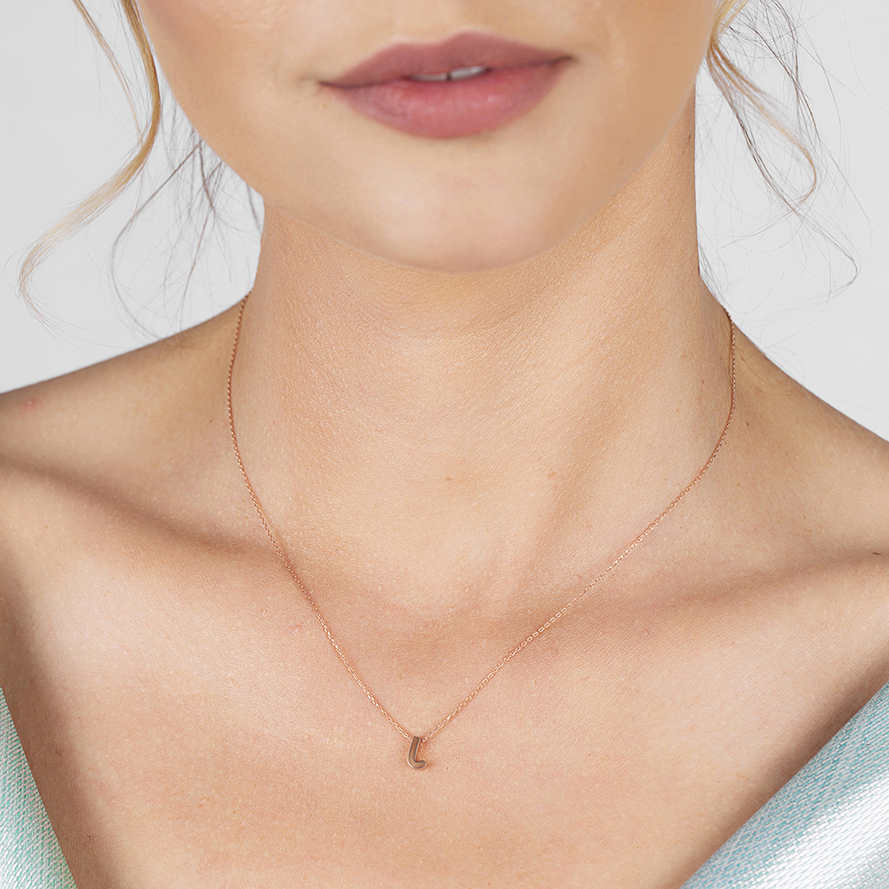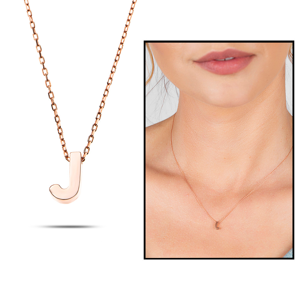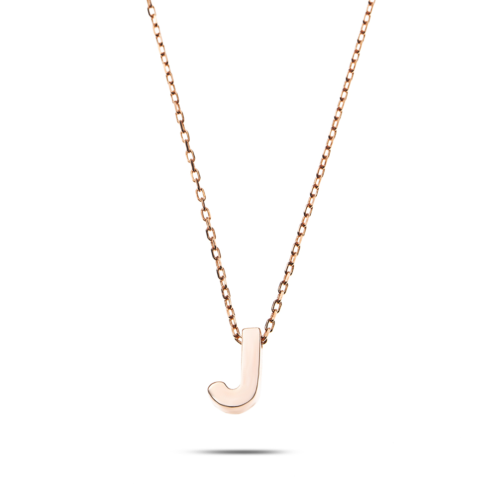 3D Tasarım Rose Renk 925 Ayar Gümüş J Harf Kolye
