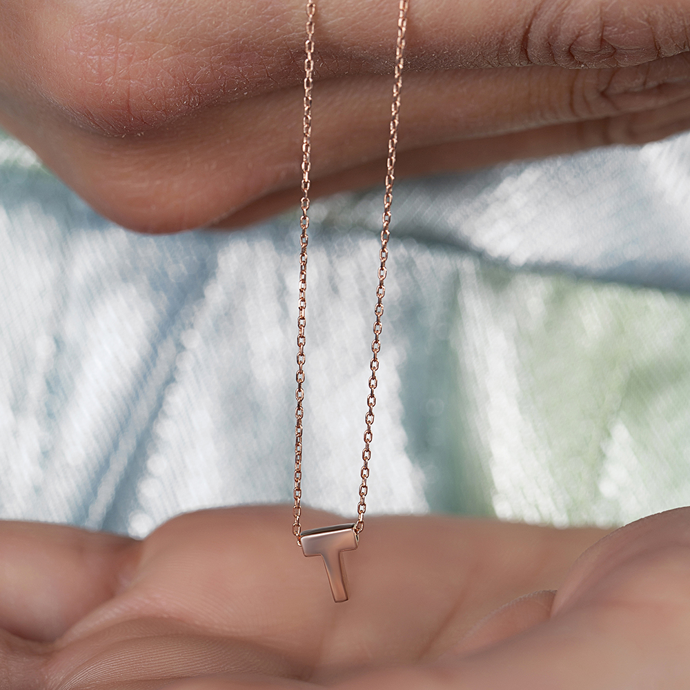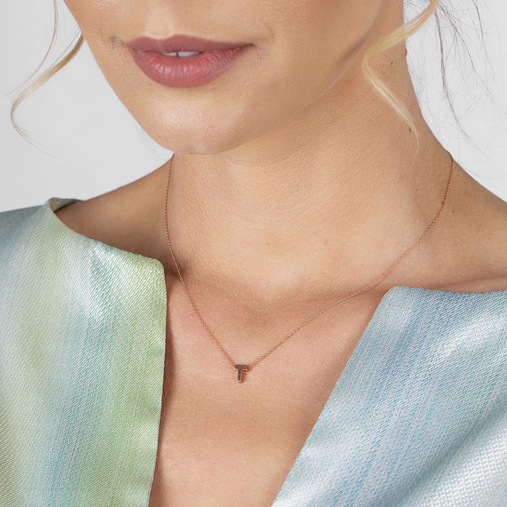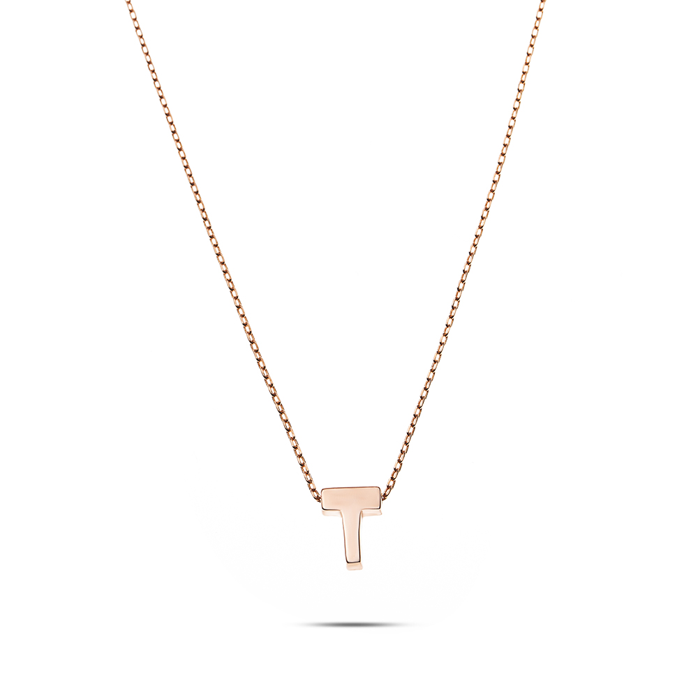 3D Tasarım Rose Renk 925 Ayar Gümüş T Harf Kolye