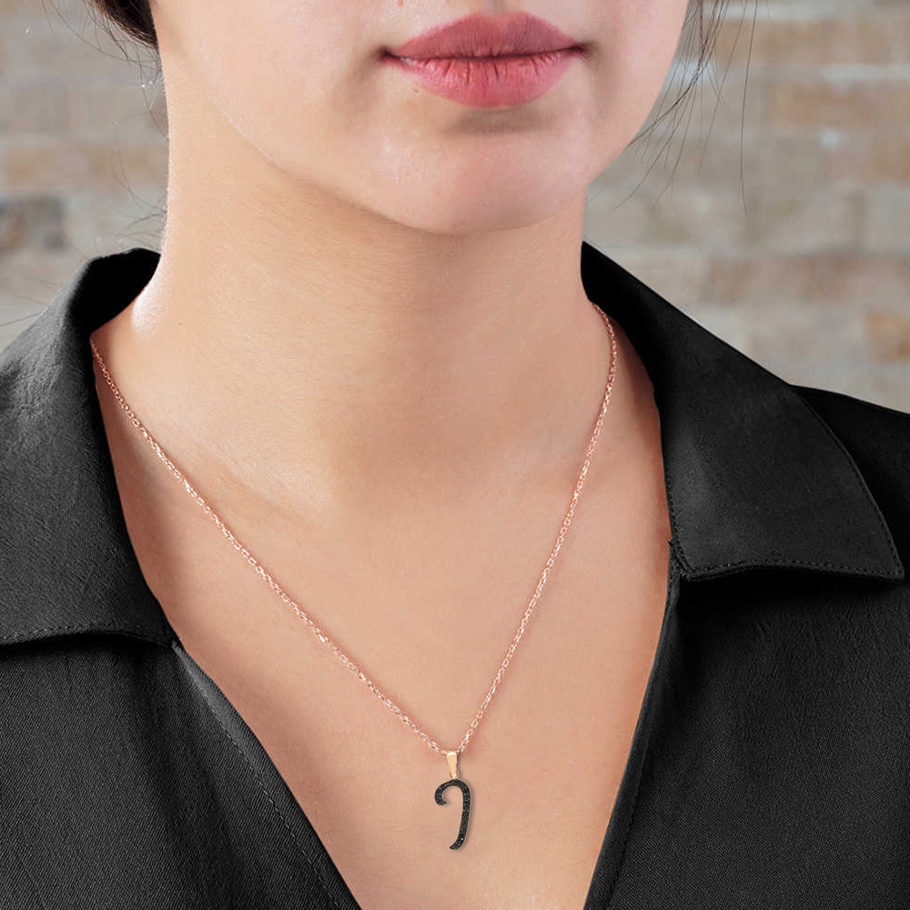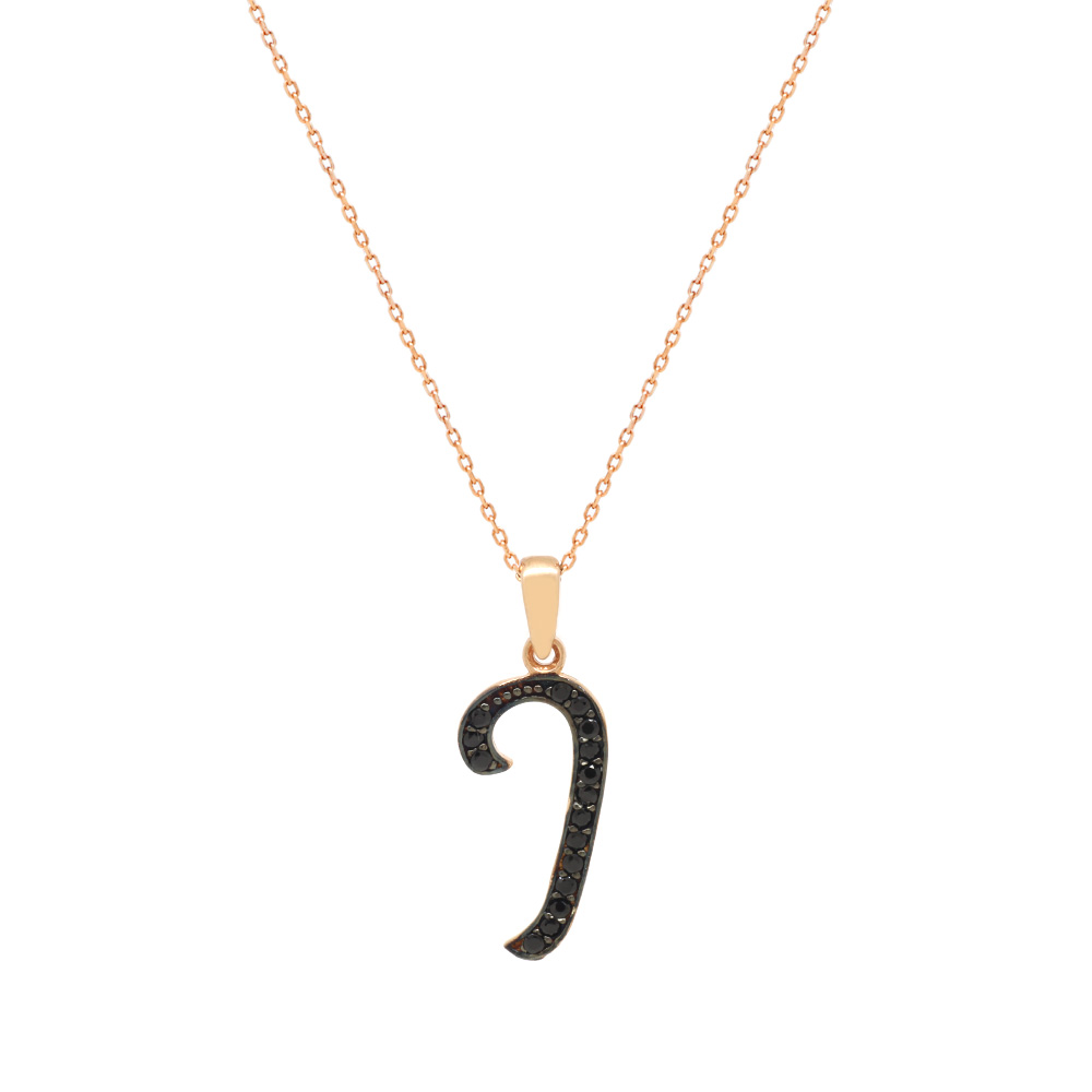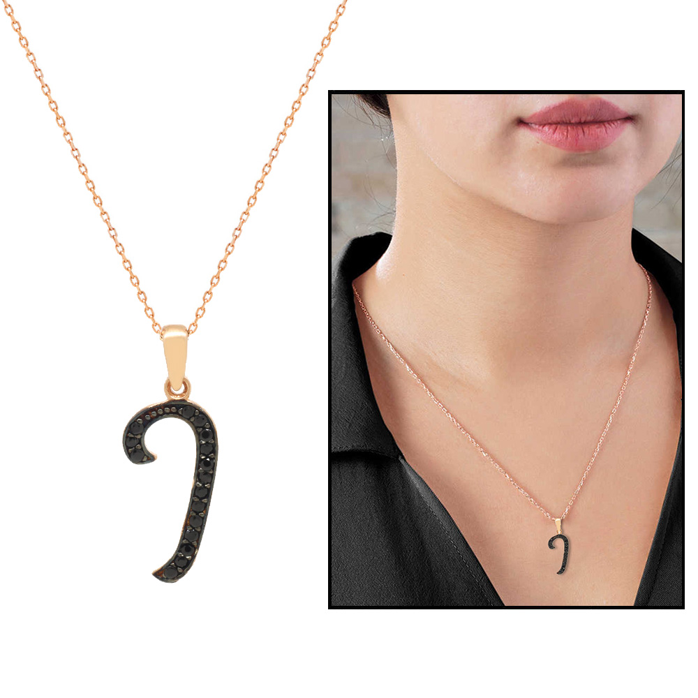 3D Tasarım Siyah Zirkon Taşlı 925 Ayar Gümüş El Yazısı Harf Kolye I