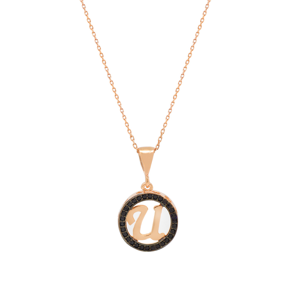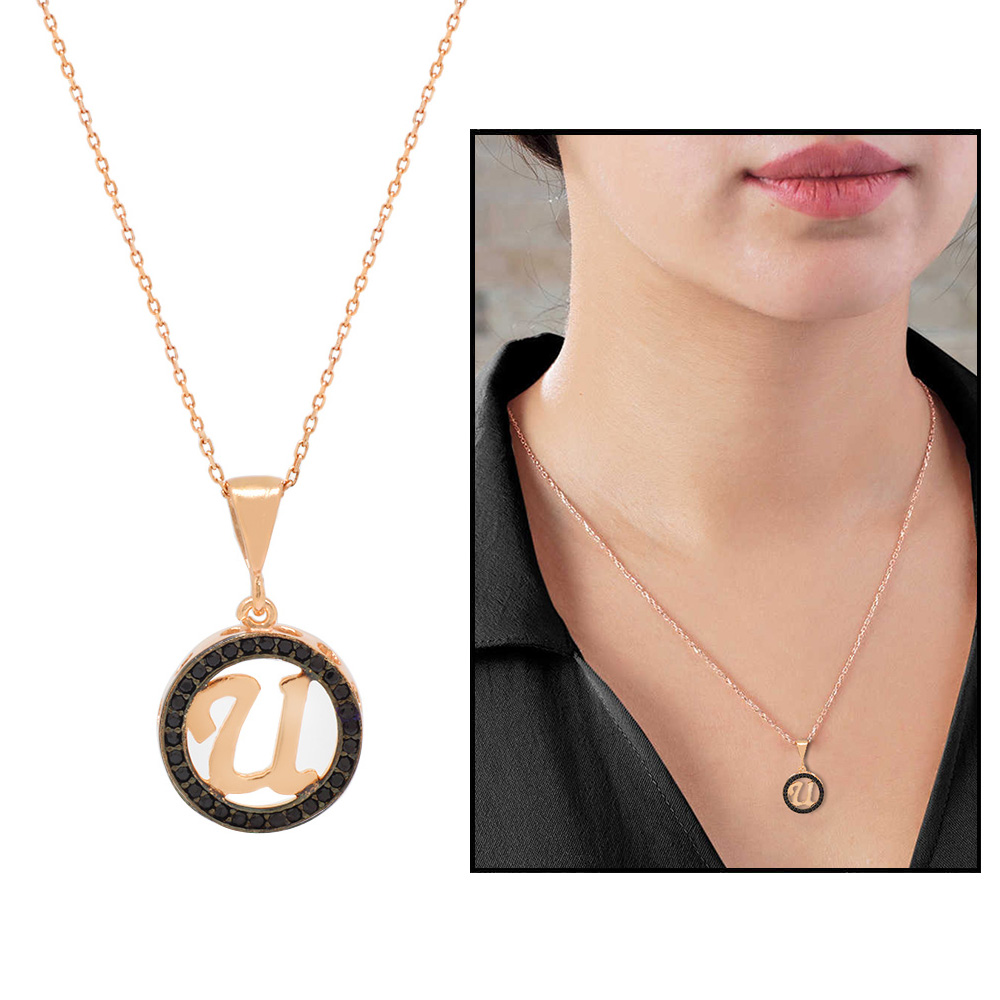 3D Tasarım Siyah Zirkon Taşlı 925 Ayar Gümüş Harf Kolye U