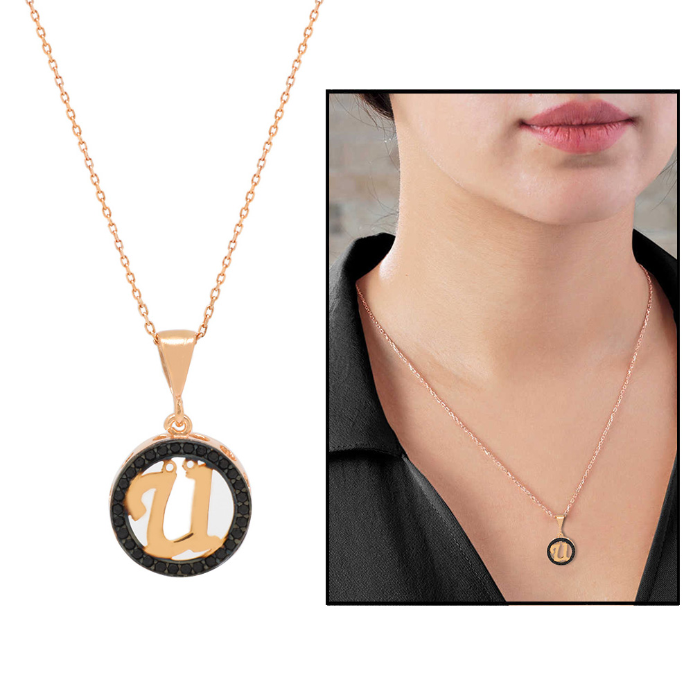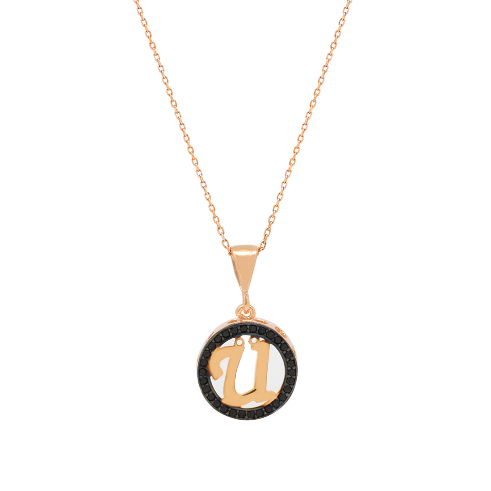 3D Tasarım Siyah Zirkon Taşlı 925 Ayar Gümüş Harf Kolye Ü
