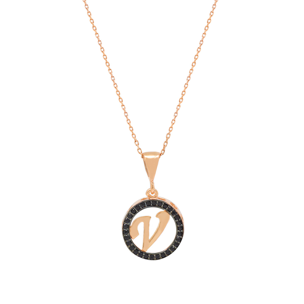 3D Tasarım Siyah Zirkon Taşlı 925 Ayar Gümüş Harf Kolye V