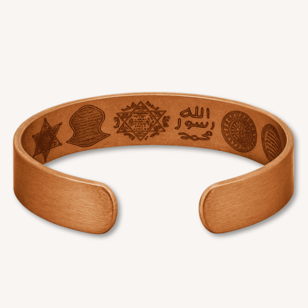 8 Motifli Bakır Erkek Bileklik - Mührü Süleyman'dan Celcelutiye - Nalını Şerif'den, Ashabı Kehf Duası'na