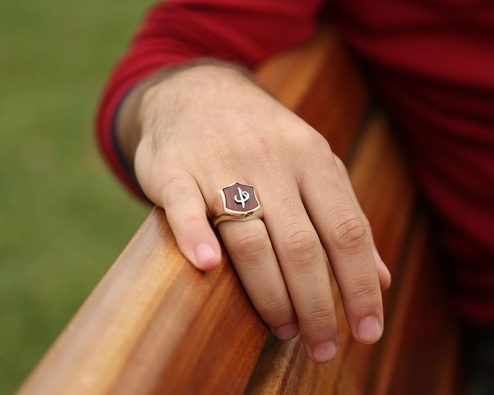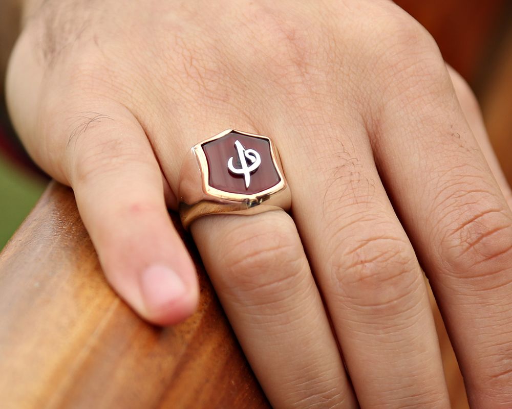 Elif Vav Tasarım Kırmızı Akik Taşlı 925 Ayar Gümüş Erkek Yüzük
