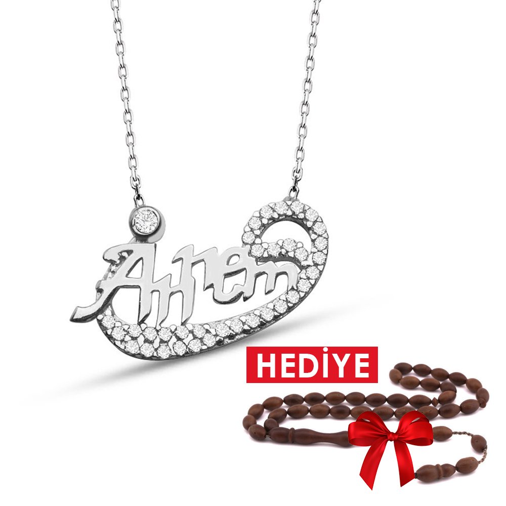 925 Ayar Gümüş Annem Yazılı Kolye (Hediyeli)