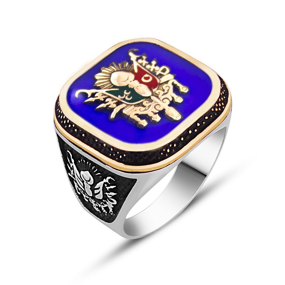 925 Ayar Gümüş Arma Tasarım Mavi Mineli Yüzük