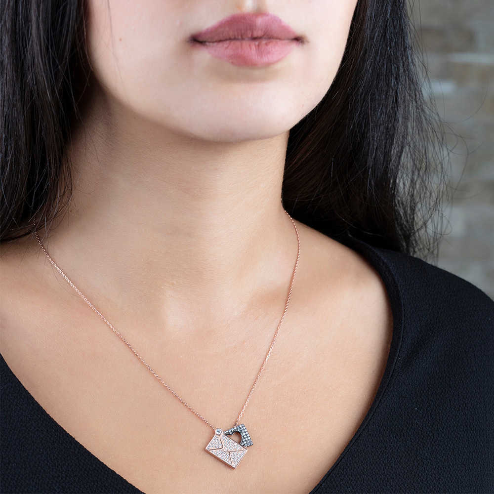 Beyaz Zirkon Taşlı Aşk Mektubu Tasarım 925 Ayar Gümüş Bayan Kolye