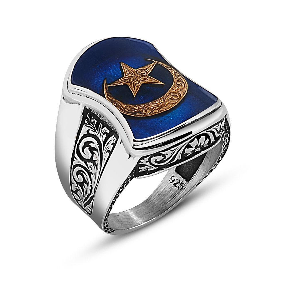 925 Ayar Gümüş Ay Yıldız Tasarım Aheng Yüzük