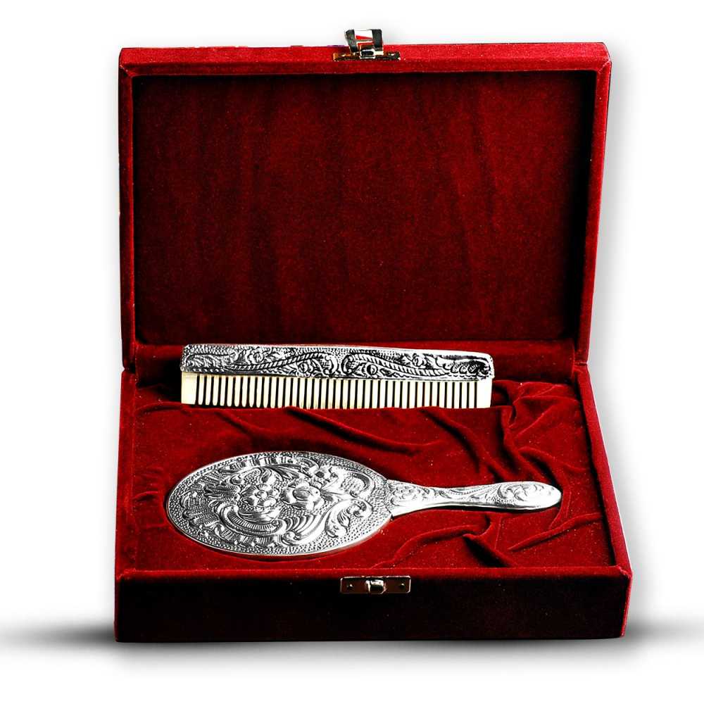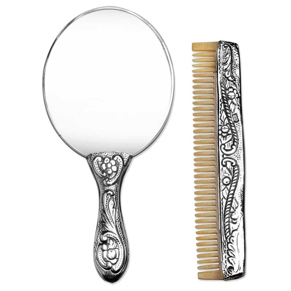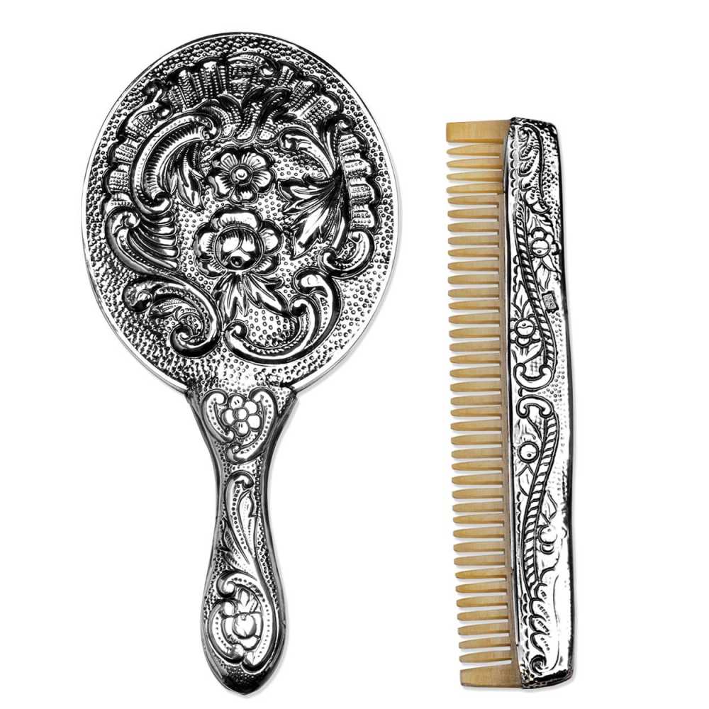 925 Ayar Gümüş Ayna ve Kemik Tarak Seti - 1