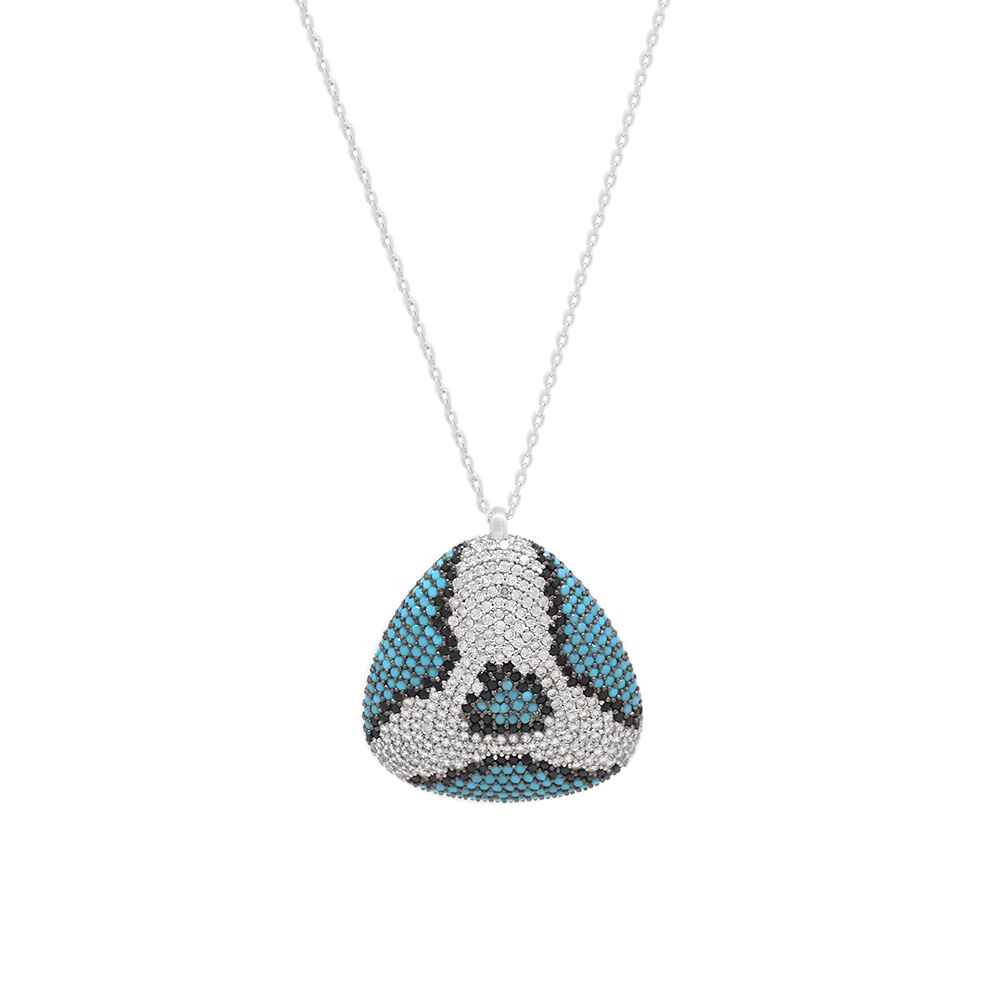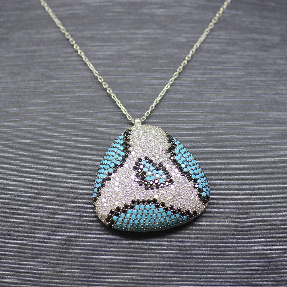 Renkli Zirkon Taşlı Oval Üçgen Tasarım 925 Ayar Gümüş Bayan Kolye