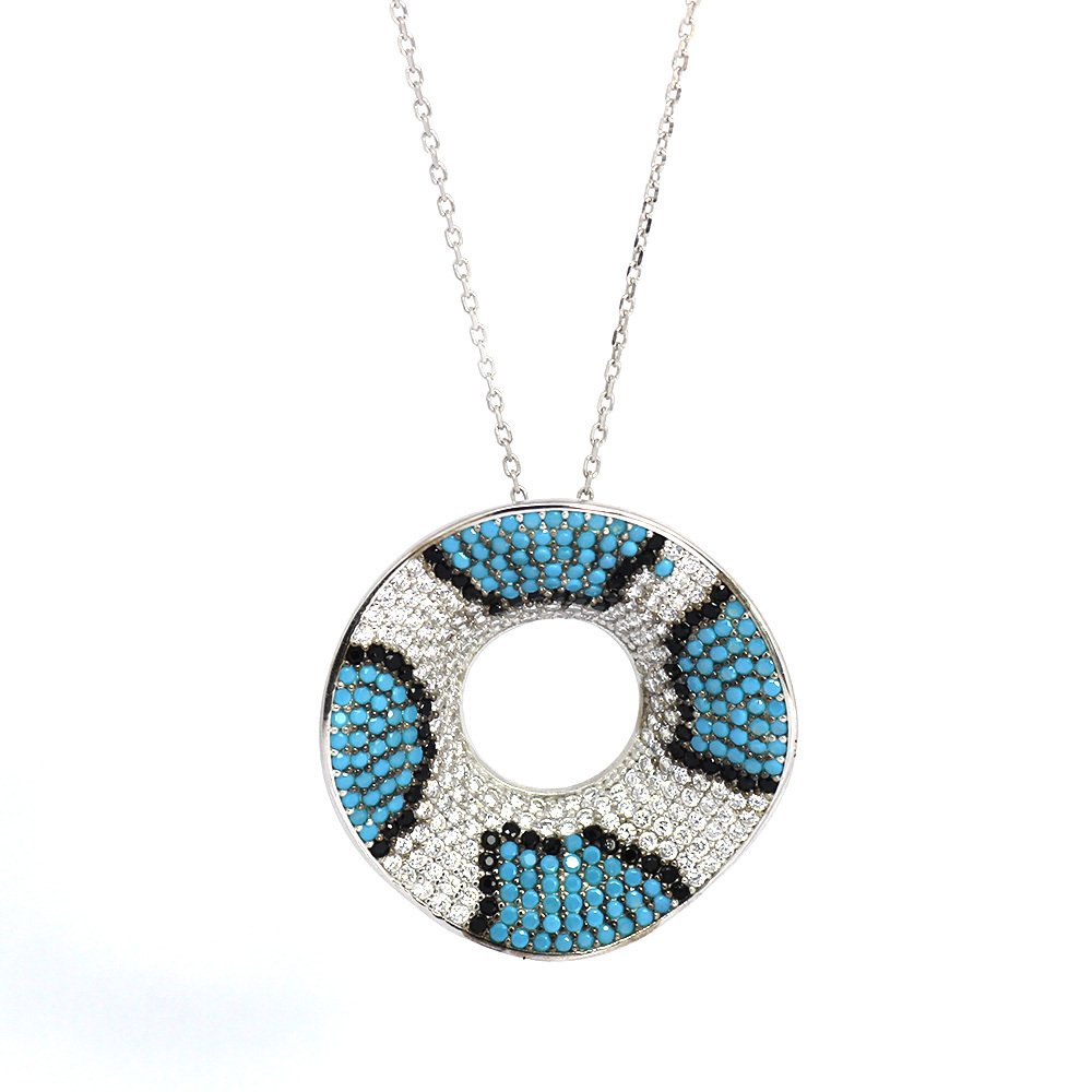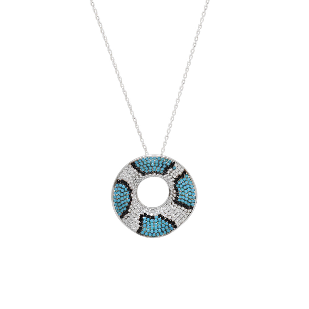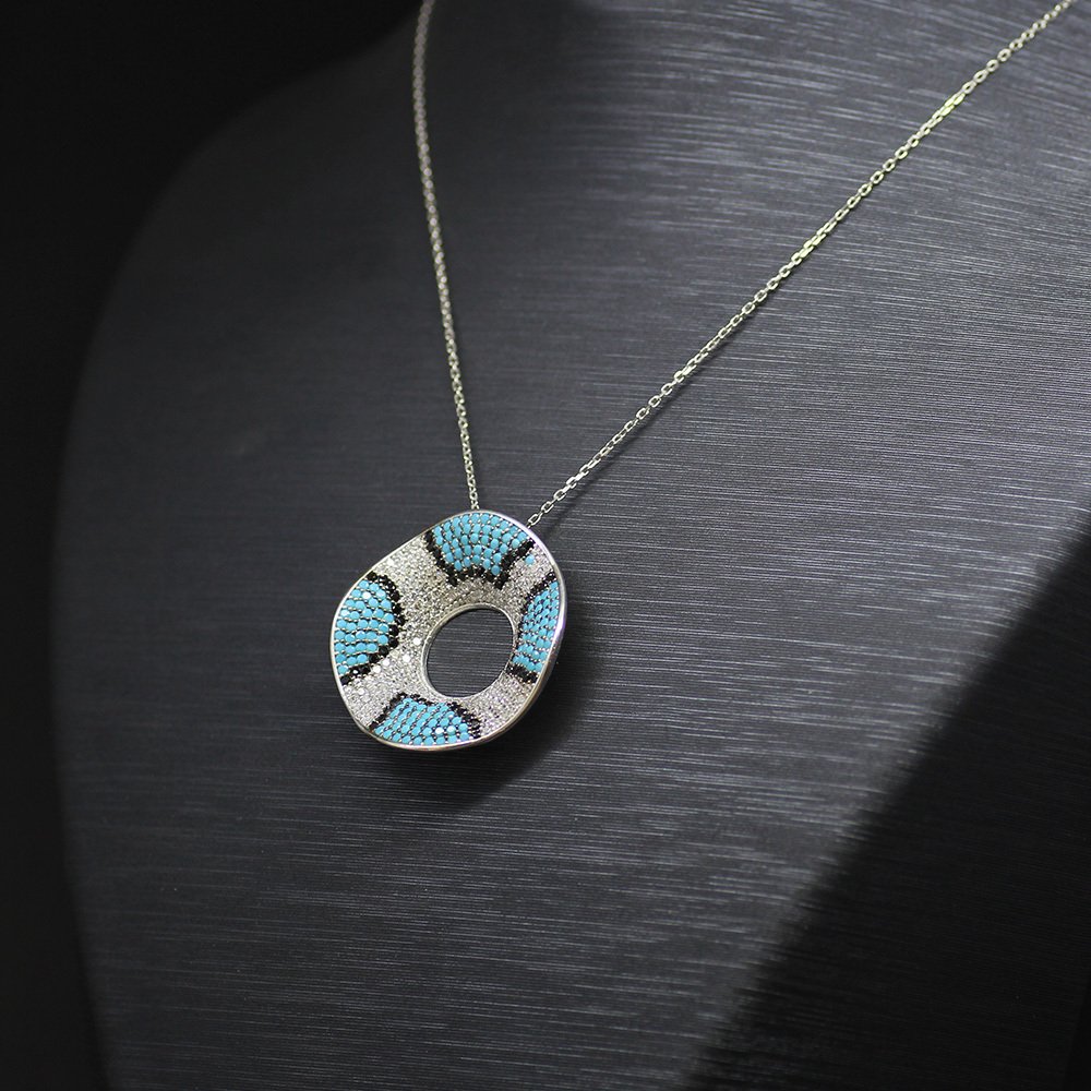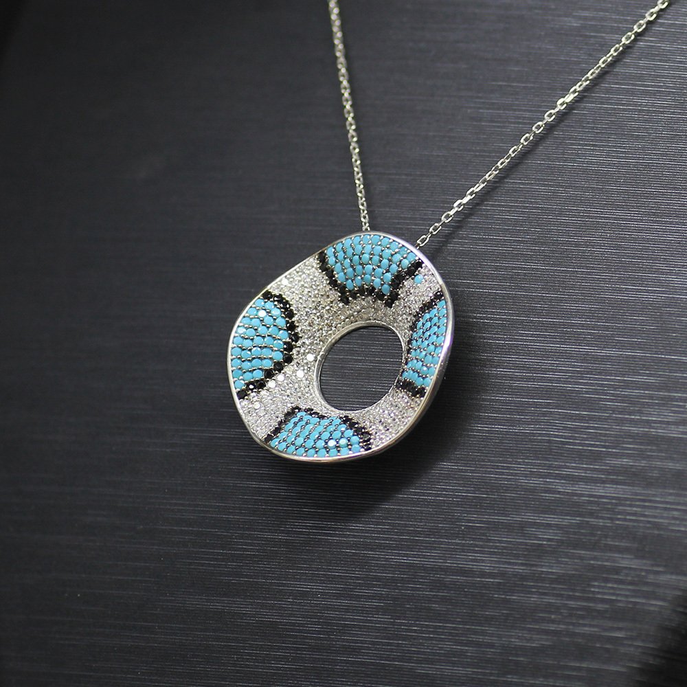 Renkli Zirkon Taşlı Dalgalı Tasarım 925 Ayar Gümüş Bayan Kolye