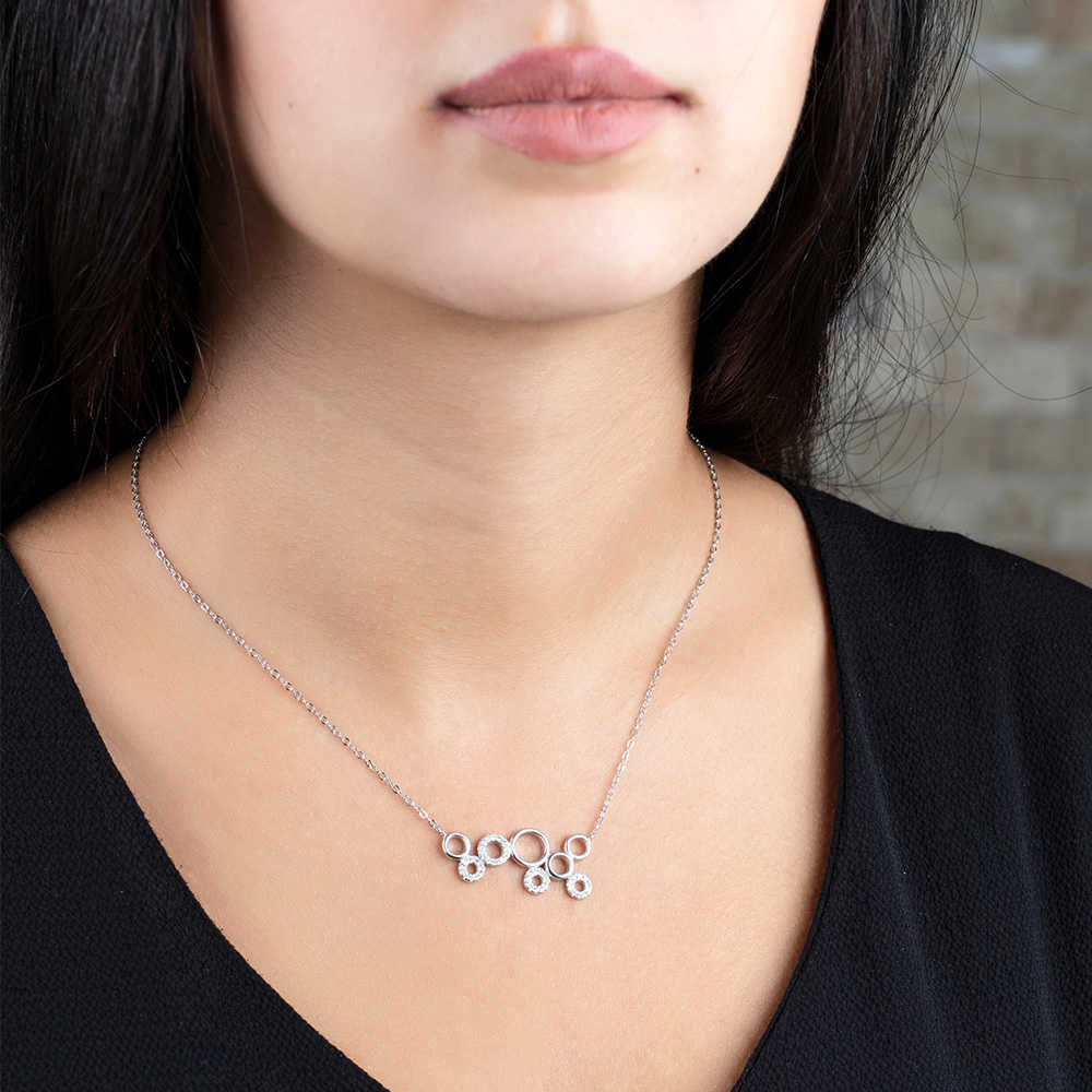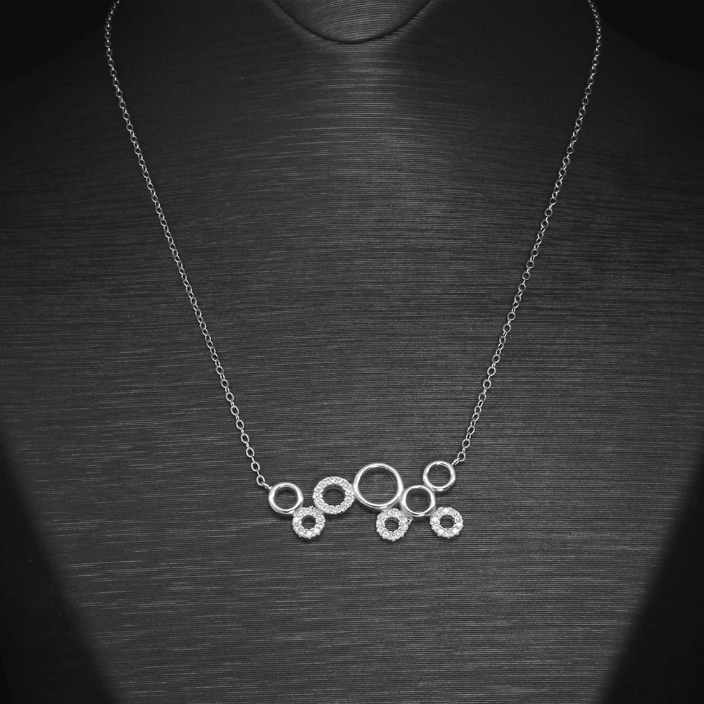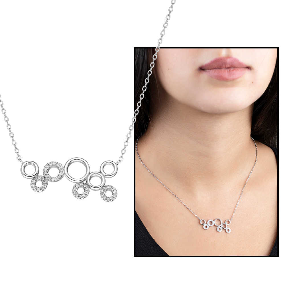 Beyaz Zirkon Taşlı 8 li Baloncuk Tasarım 925 Ayar Gümüş Bayan Kolye