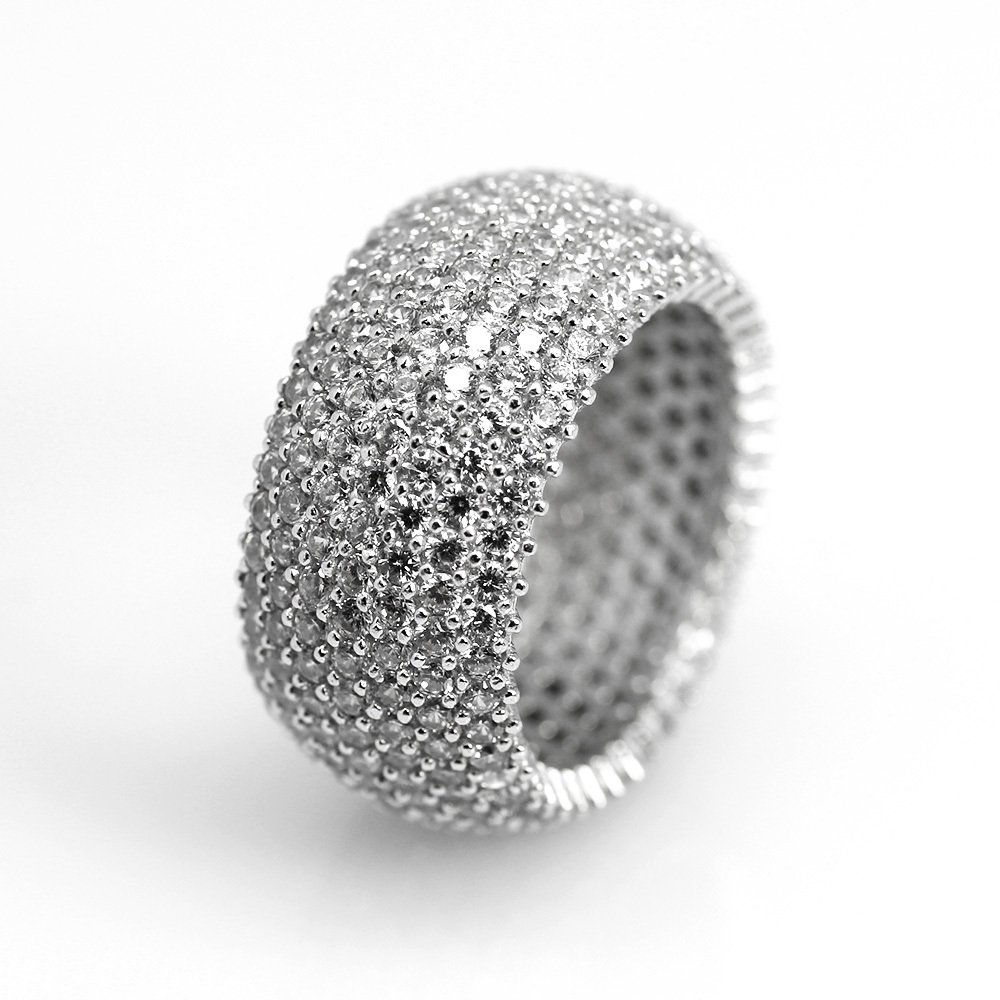 925 Ayar Gümüş Beyaz Zirkon Taş İşlemeli Oval Tam Tur Bayan Yüzük