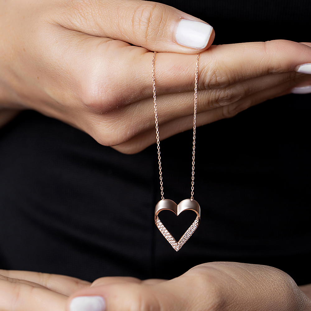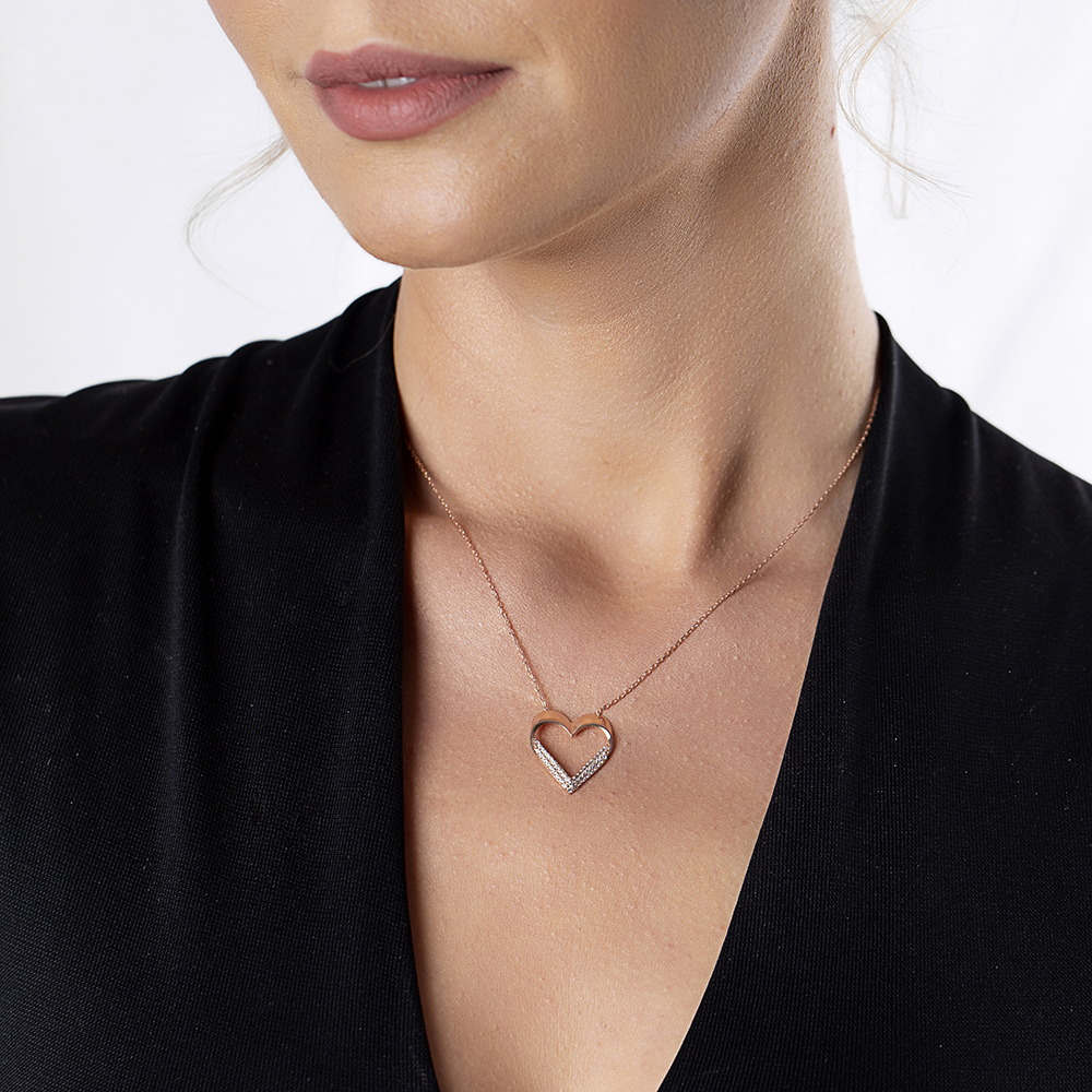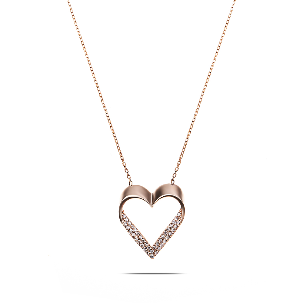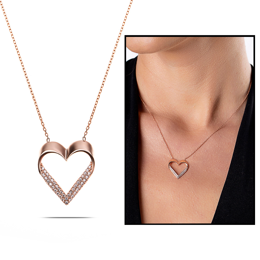 925 Ayar Gümüş Beyaz Taşlı Kalp Kolye