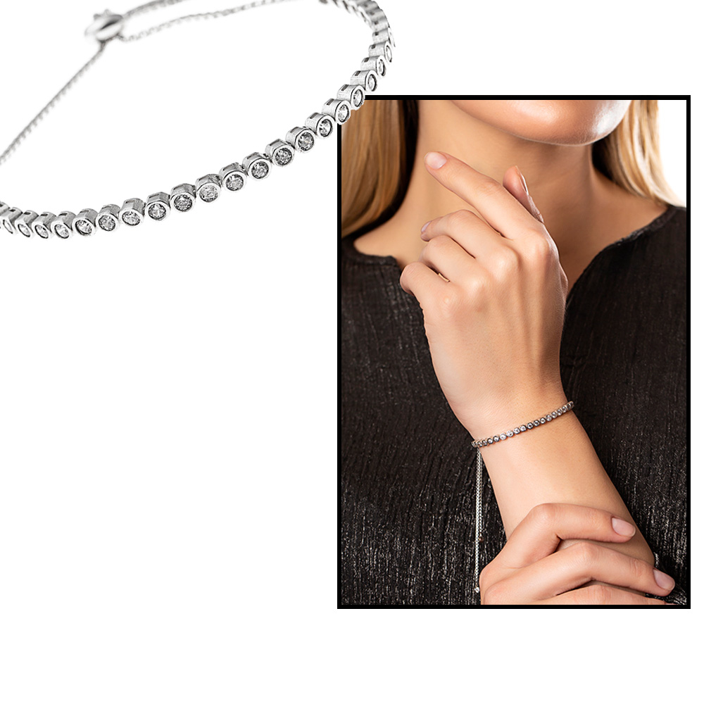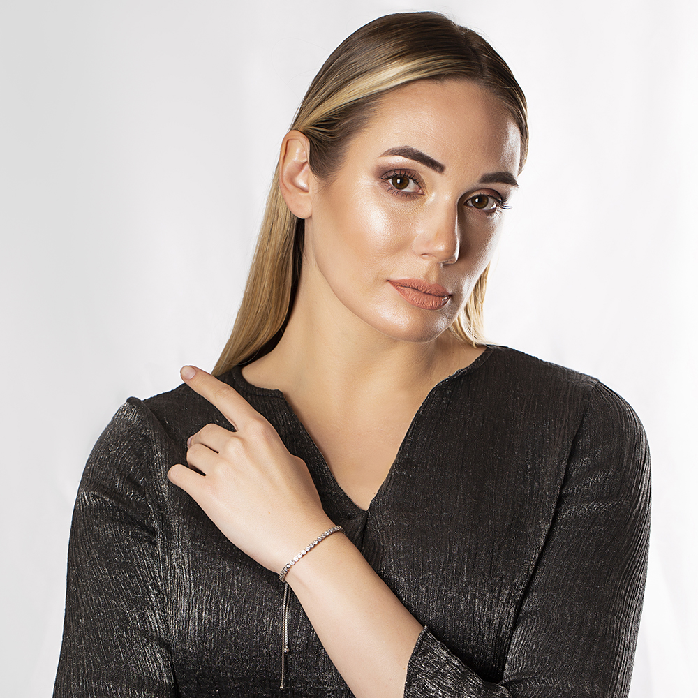 Beyaz Zirkon Taş İşlemeli 925 Ayar Gümüş Bayan Bileklik