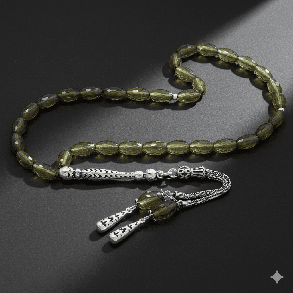 925 Ayar Gümüş Çift Püsküllü Fasetalı Arpa Kesim Zultanit Tesbih