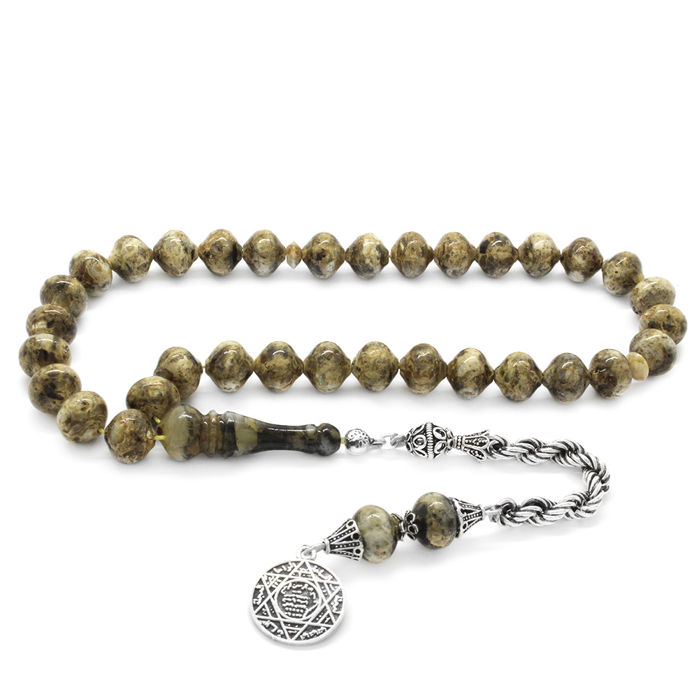 925 Ayar Gümüş Halat Püsküllü İstanbul Kesim Dalmaçya Damla Kehribar Tesbih - 1