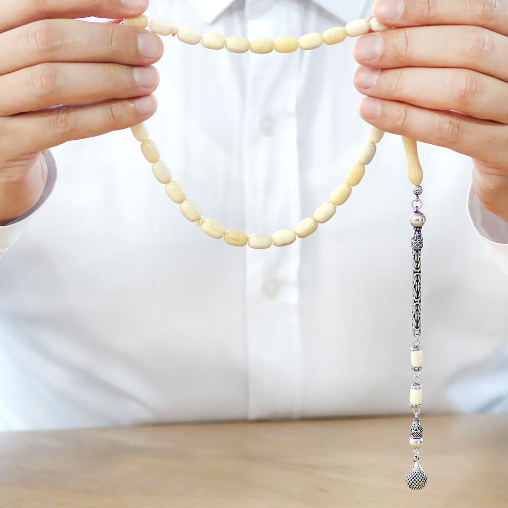 Doğal deve kemiğinden özenle işlenen tesbihlerimiz, hem geleneksel bir dokunuş hem de modern bir şıklık sunar. Deve kemiğinin dayanıklı yapısı sayesinde tesbihlerimiz uzun yıllar boyunca ilk günkü görünümünü korur. Tamamen doğal ve sürdürülebilir bir ürün olan tesbihlerimiz, doğanın bize sunduğu güzellikleri yansıtır. Hayat döngüsünün bir parçası olan deve kemiği tesbihleri, size özel bir aksesuara dönüştürürken hiçbir canlıya zarar verilmemektedir.