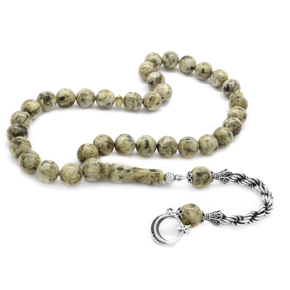 925 Ayar Gümüş Halat Püsküllü Küre Kesim Dalmaçya Damla Kehribar Tesbih