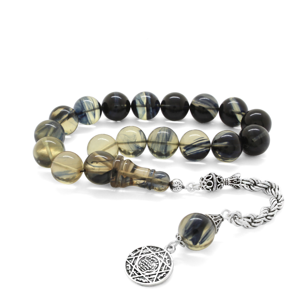 925 Ayar Gümüş Halat Püsküllü Süzme Siyah Beyaz Ateş Kehribar Efe Tesbih - 1