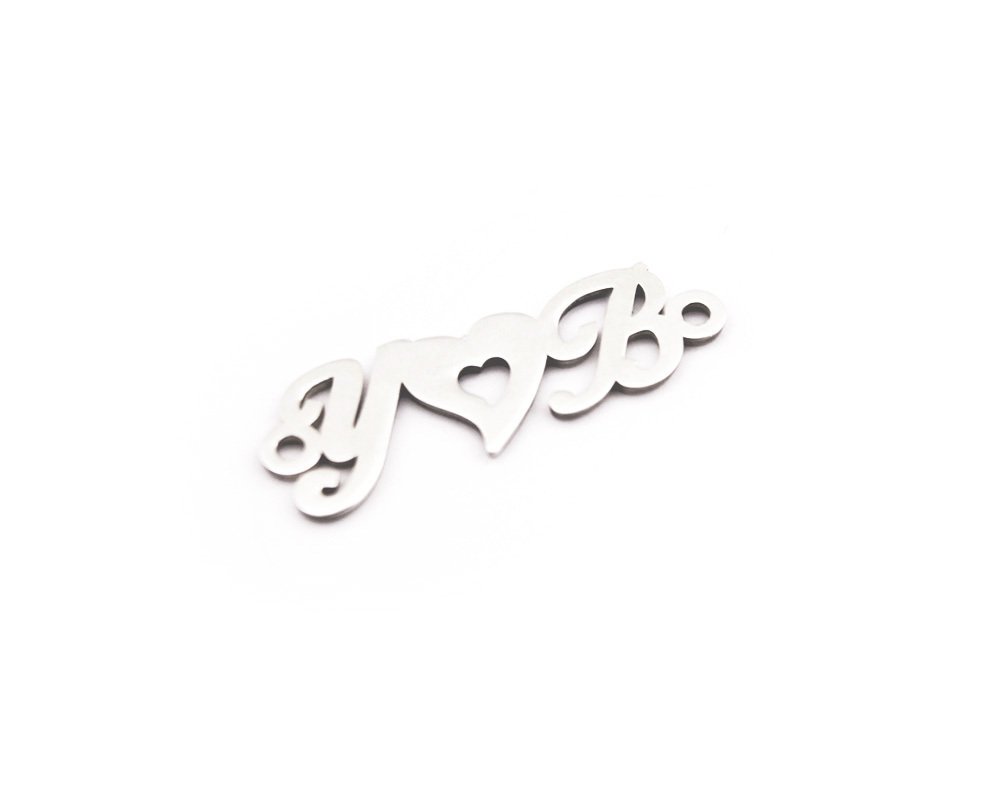 İsme Özel Harfli Kalp Motifli 925 Ayar Gümüş Püskül Ucu