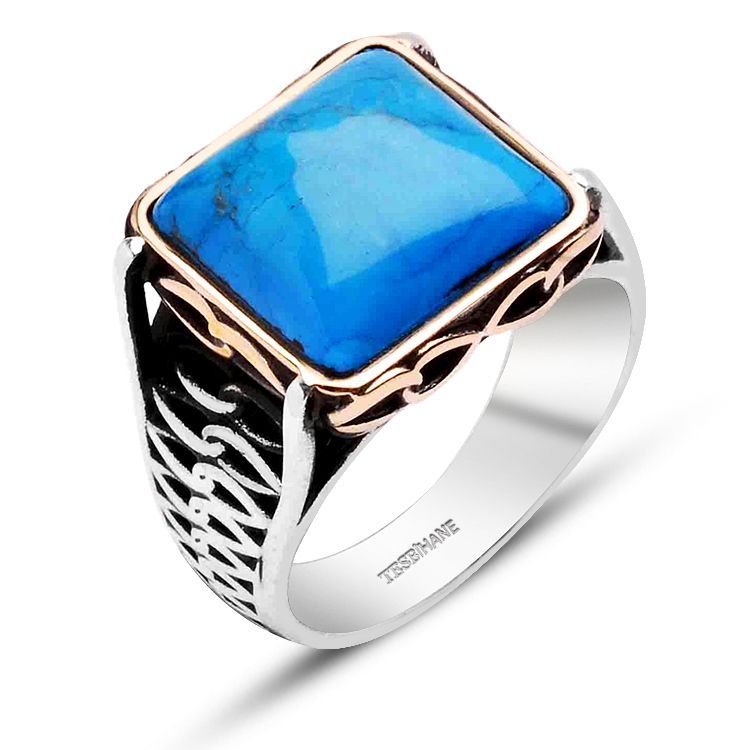 925 Ayar Gümüş Kare Model Turkuaz Taşlı Yüzük