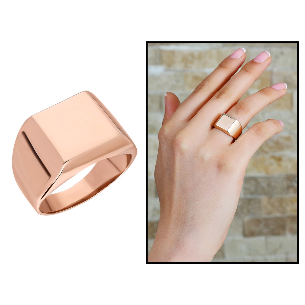 925 Ayar Gümüş Dörtgen Tasarım Rose Renk Bayan Yüzük