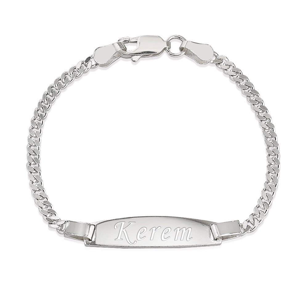 925 Ayar Gümüş Zincirli Kişiye Özel İsim Yazılı Çocuk Bileklik - 1