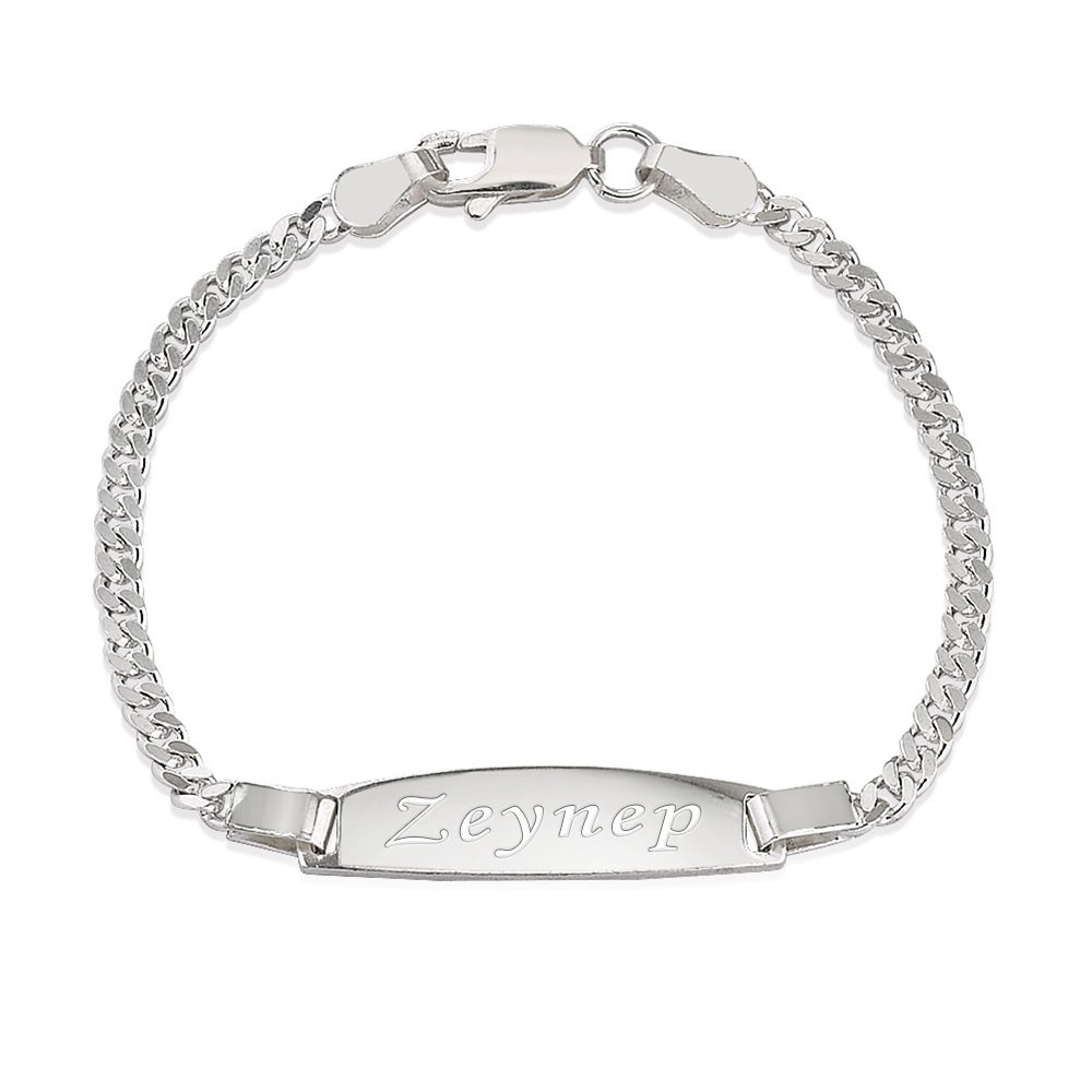 925 Ayar Gümüş Zincirli Kişiye Özel İsim Yazılı Çocuk Bileklik