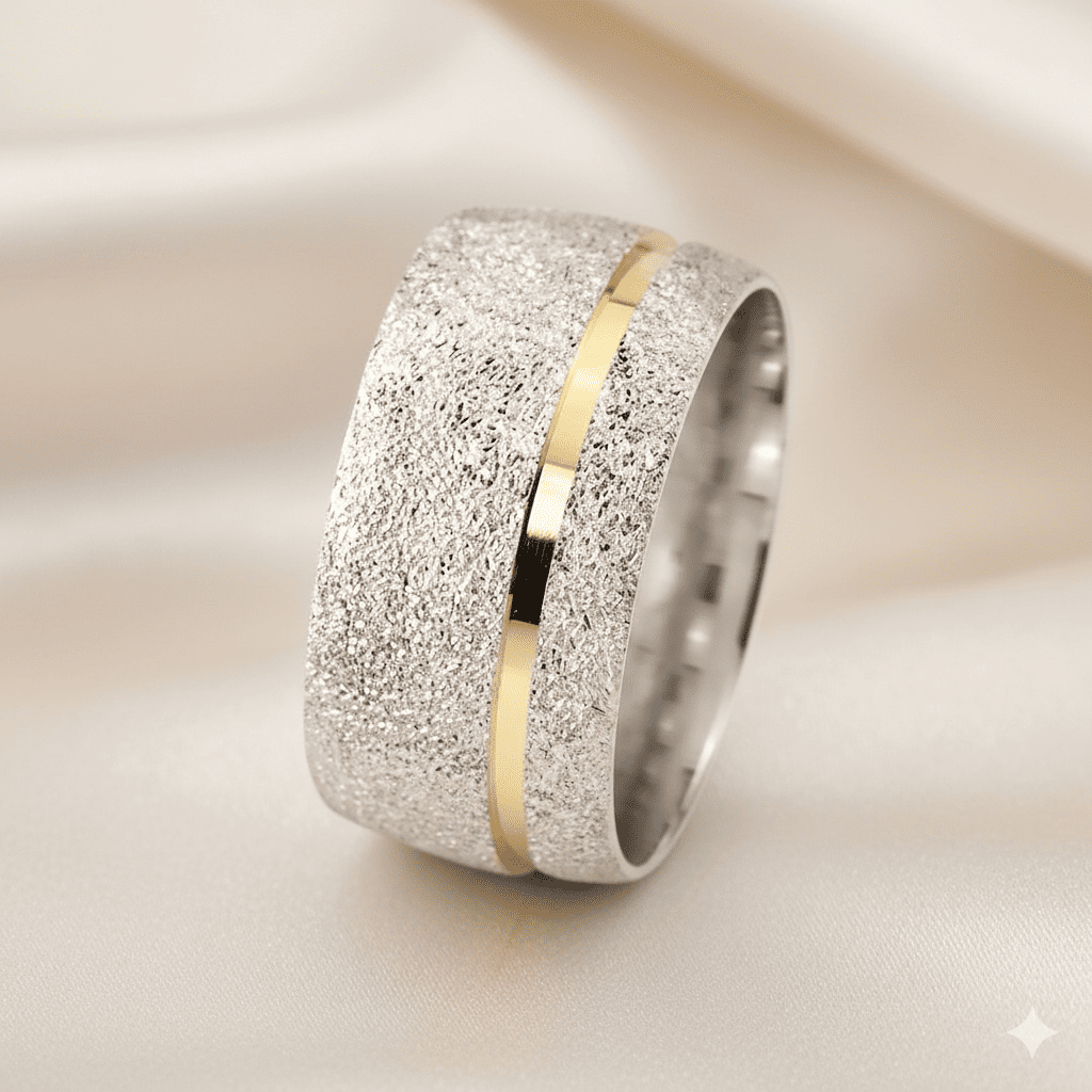 Gold Renk Çizgi Tasarım 925 Ayar Gümüş Bayan Alyans