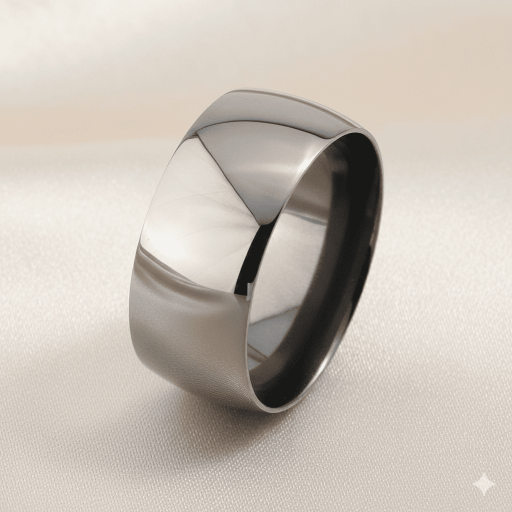 Klasik Tasarım Bombeli Siyah Rodyum Rengi 925 Ayar Gümüş Erkek Alyans - M2