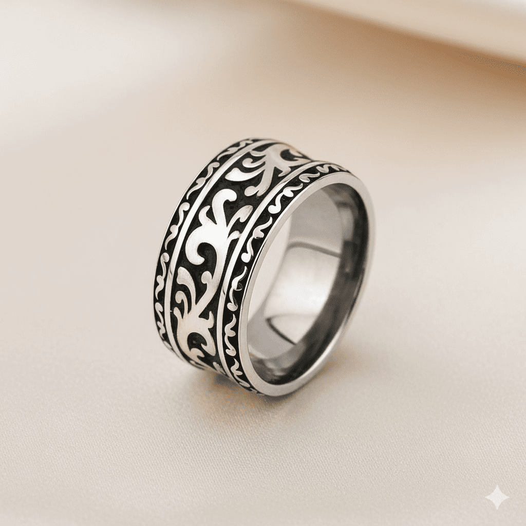 Klasik Doğu Motifli 925 Ayar Gümüş Erkek Alyans