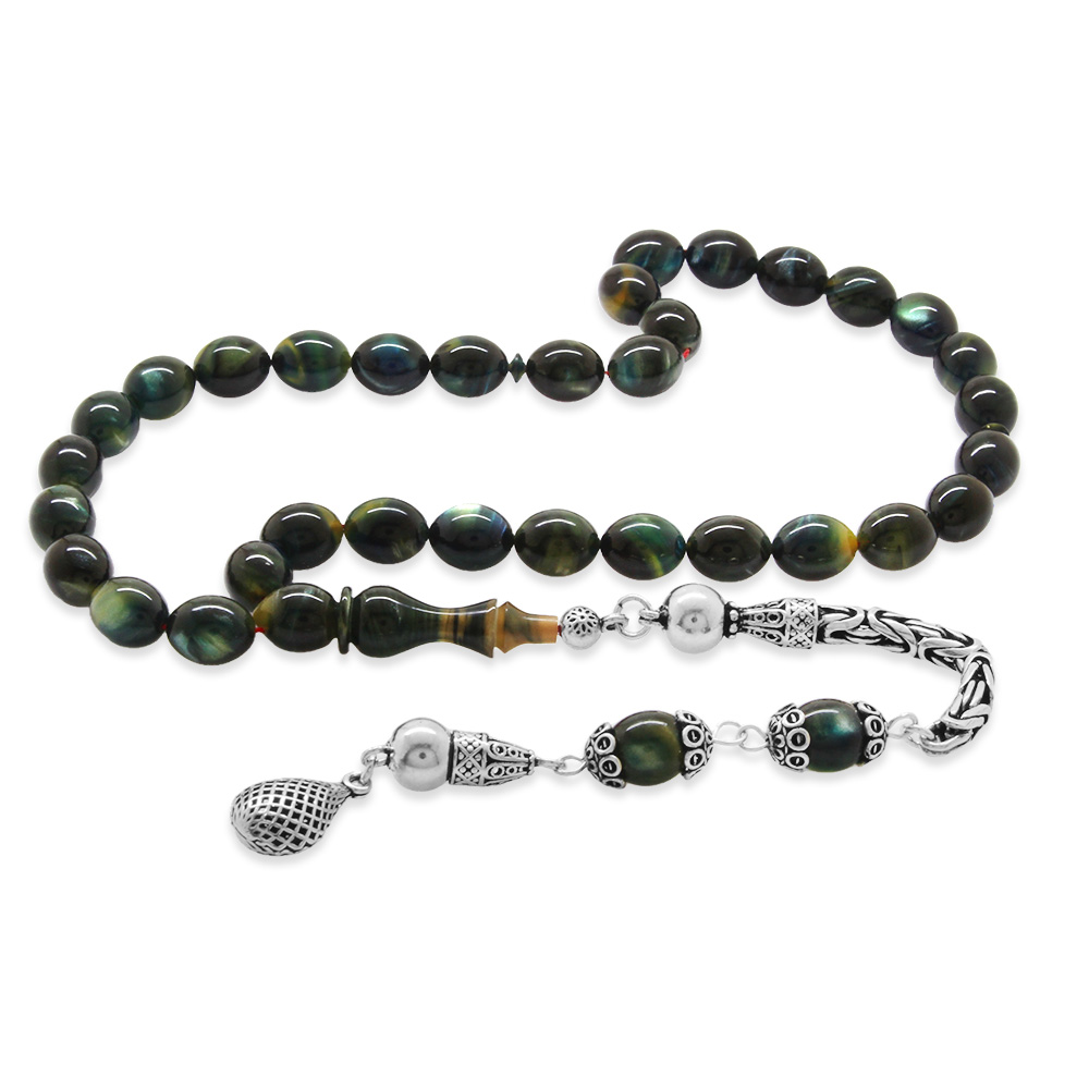 925 Ayar Gümüş Kral Püsküllü Özel Kesim Mix Renk Sedefli Katalin Tesbih