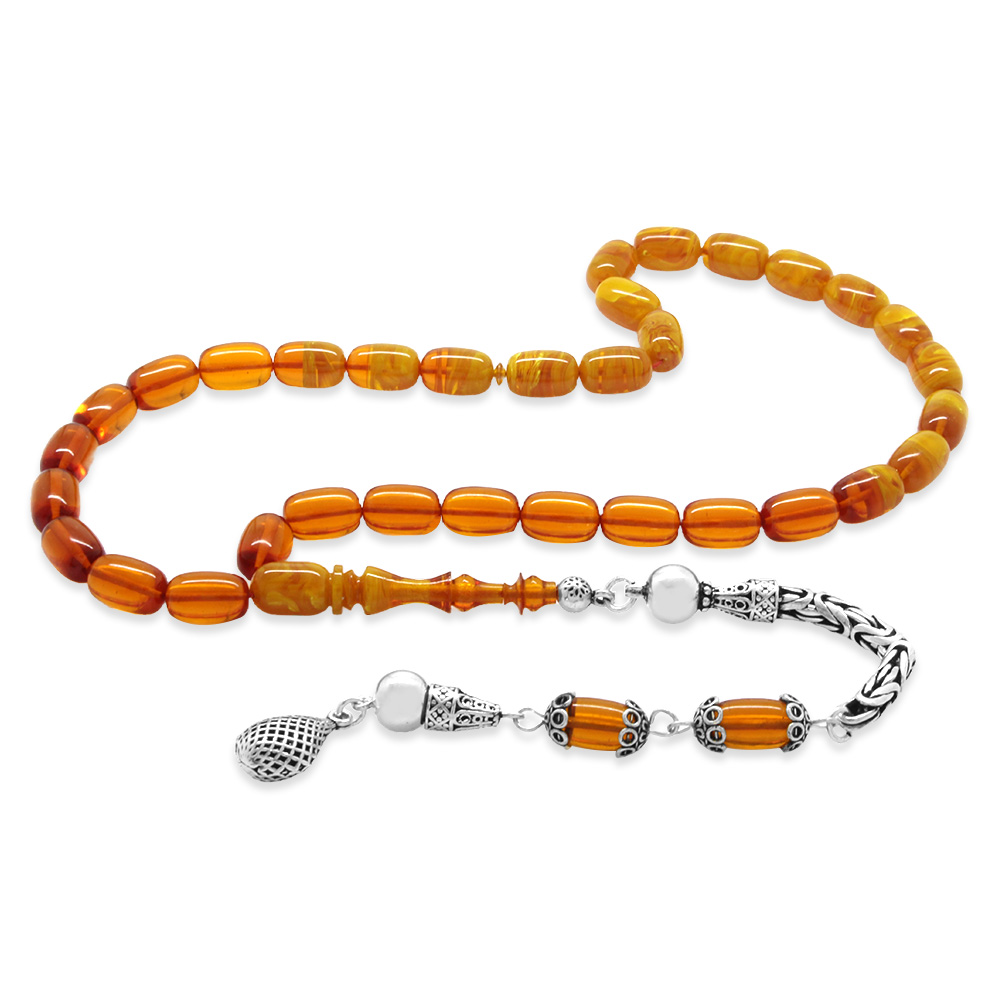 925 Ayar Gümüş Kral Püsküllü Özel Kesim Süzme Bal Beyaz Ateş Kehribar Tesbih