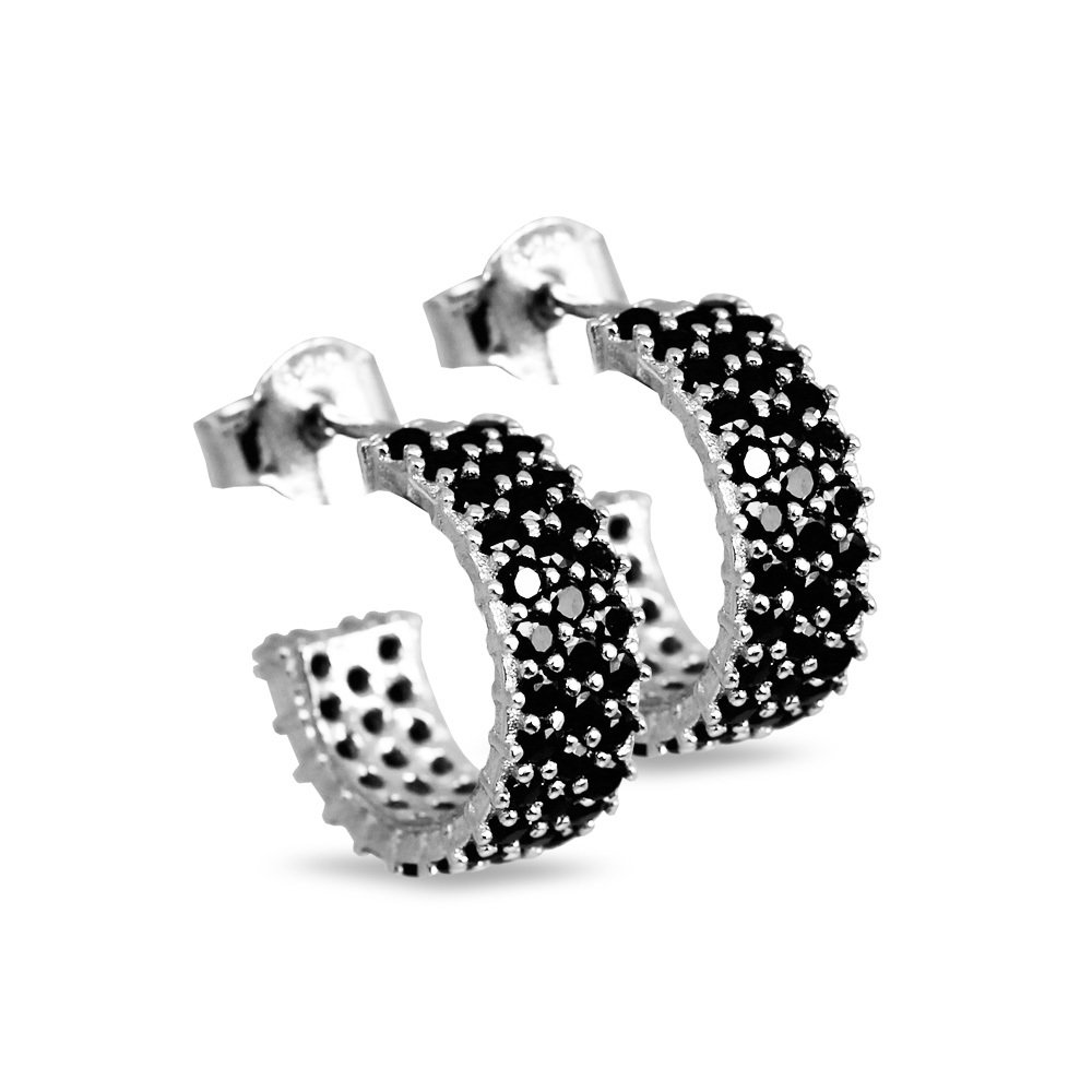 Siyah Zirkon Taşlı Yarım Tur Gümüş Renk 925 Ayar Gümüş Küpe
