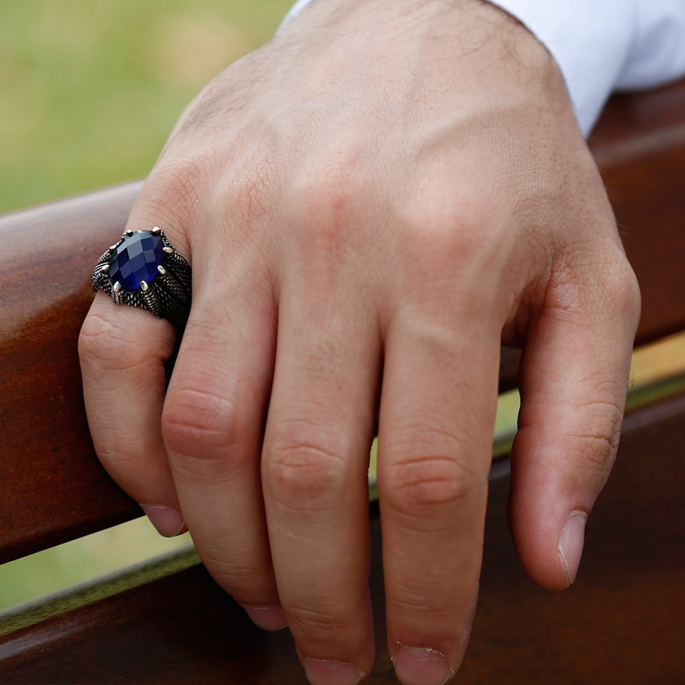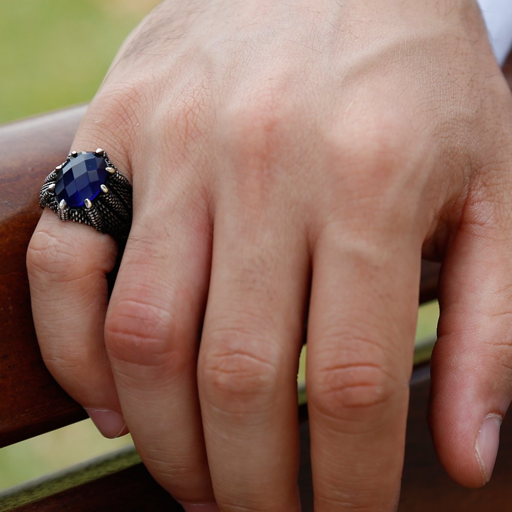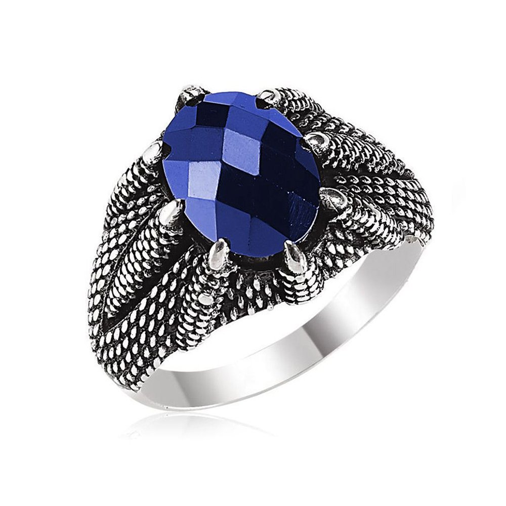 Kartal Pençesi Tasarım Lacivert Zirkon Taşlı 925 Ayar Gümüş Yüzük