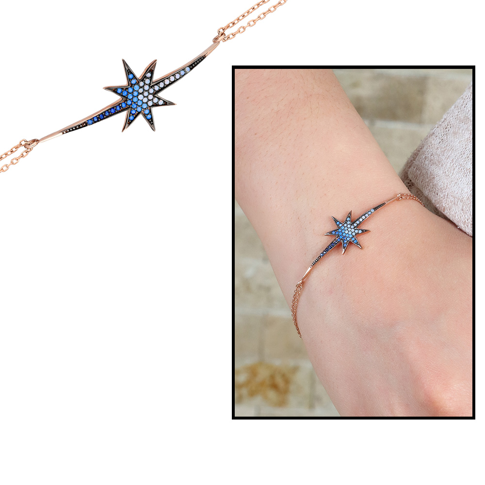 Beyaz Mavi Zirkon Taşlı Kuyruklu Yıldız 925 Ayar Gümüş Bayan Bileklik - 6