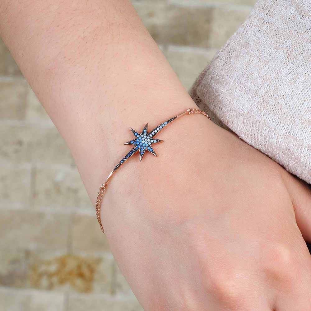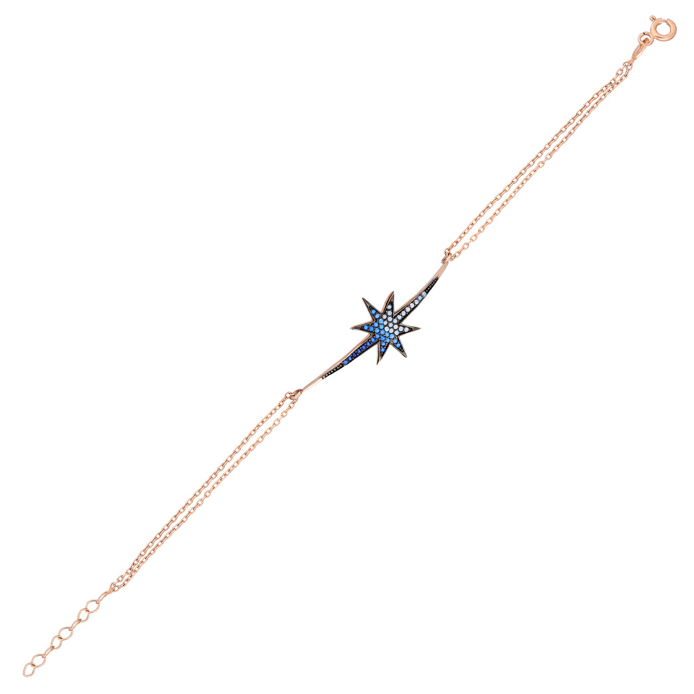 Beyaz Mavi Zirkon Taşlı Kuyruklu Yıldız 925 Ayar Gümüş Bayan Bileklik - 1