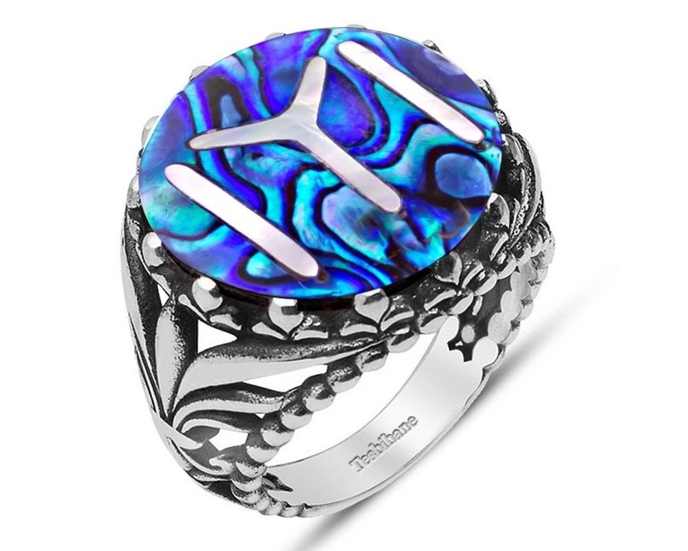 Okyanus Sedefi Üzerine Sedef Kakma Kayı Motifli El İşçiliği 925 Ayar Gümüş Yüzük