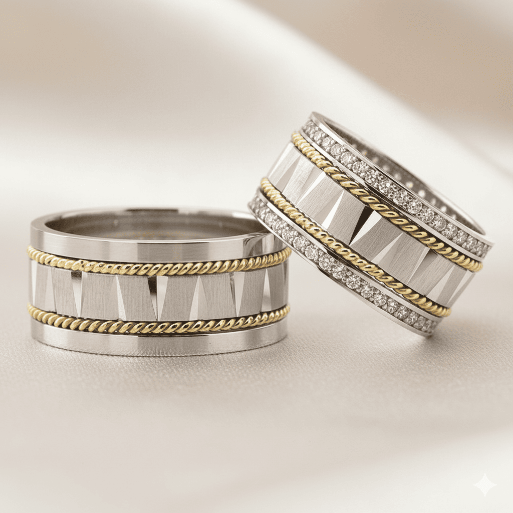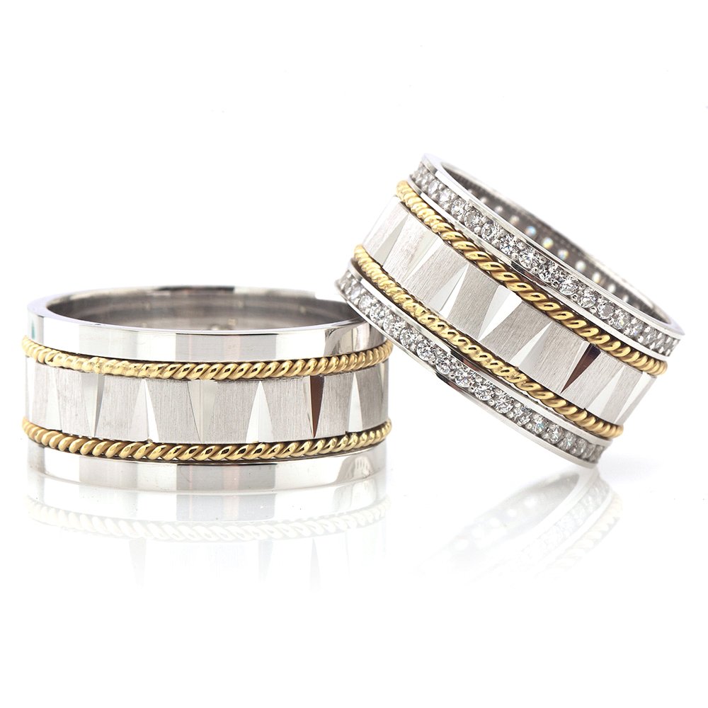 Çift Sıra Örgü Tasarım 925 Ayar Gümüş Çift Alyans
