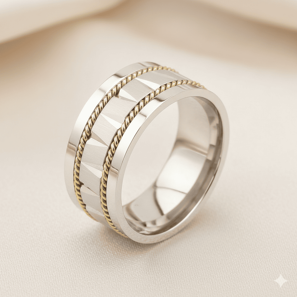 Çift Sıra Örgü Tasarım 925 Ayar Gümüş Erkek Alyans