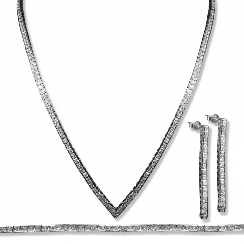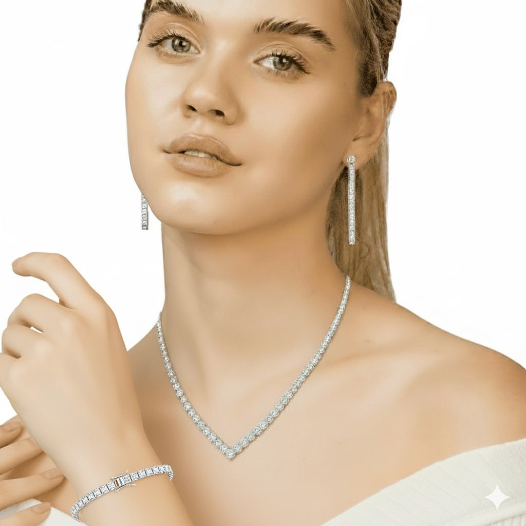 Vera 925 Ayar Gümüş 3 lü İthal Takım - Şık Kadın Kolye, Küpe ve Bileklik Seti