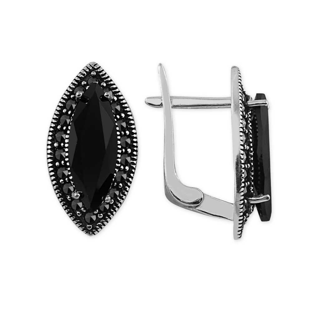 925 Ayar Gümüş Özel Tasarım Siyah Zirkon Taşlı Küpe - 1