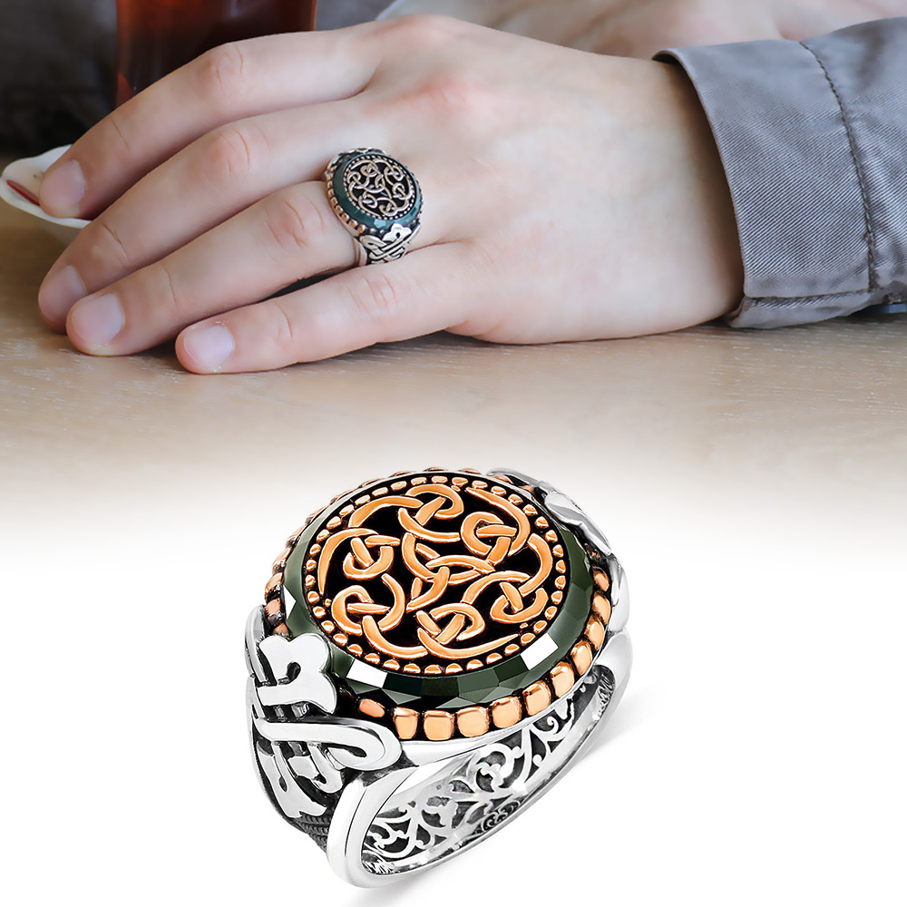 Özel Tasarım Yeşil Akik Taşlı 925 Ayar Gümüş Erkek Yüzük
